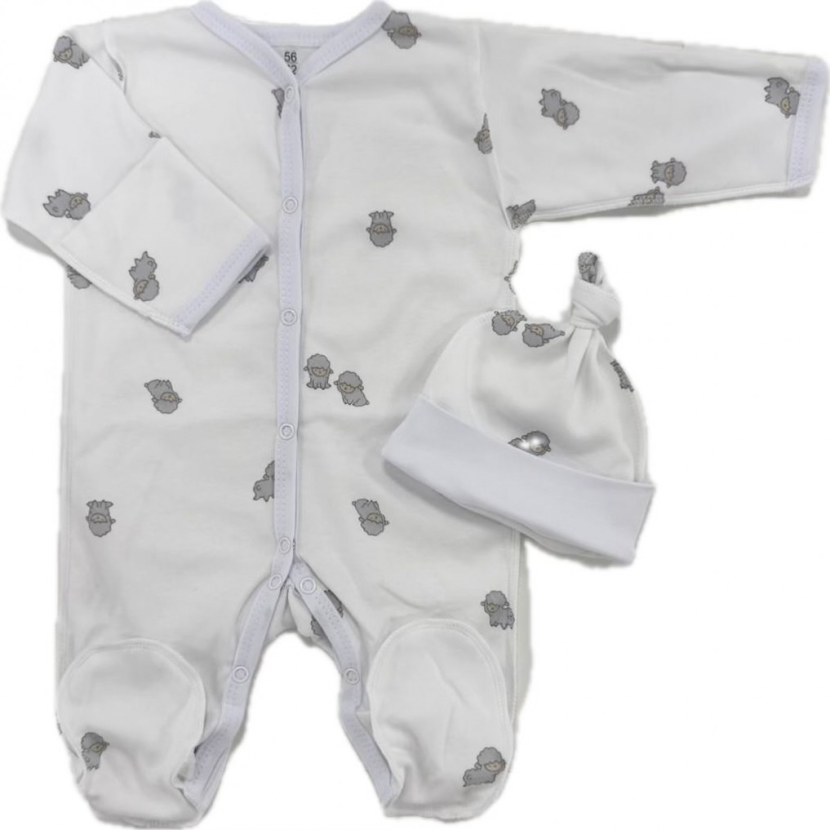 Комплект: Слип на кнопках + шапочка-узелок со швами наружу 56-62 см "Барашки " Т-097