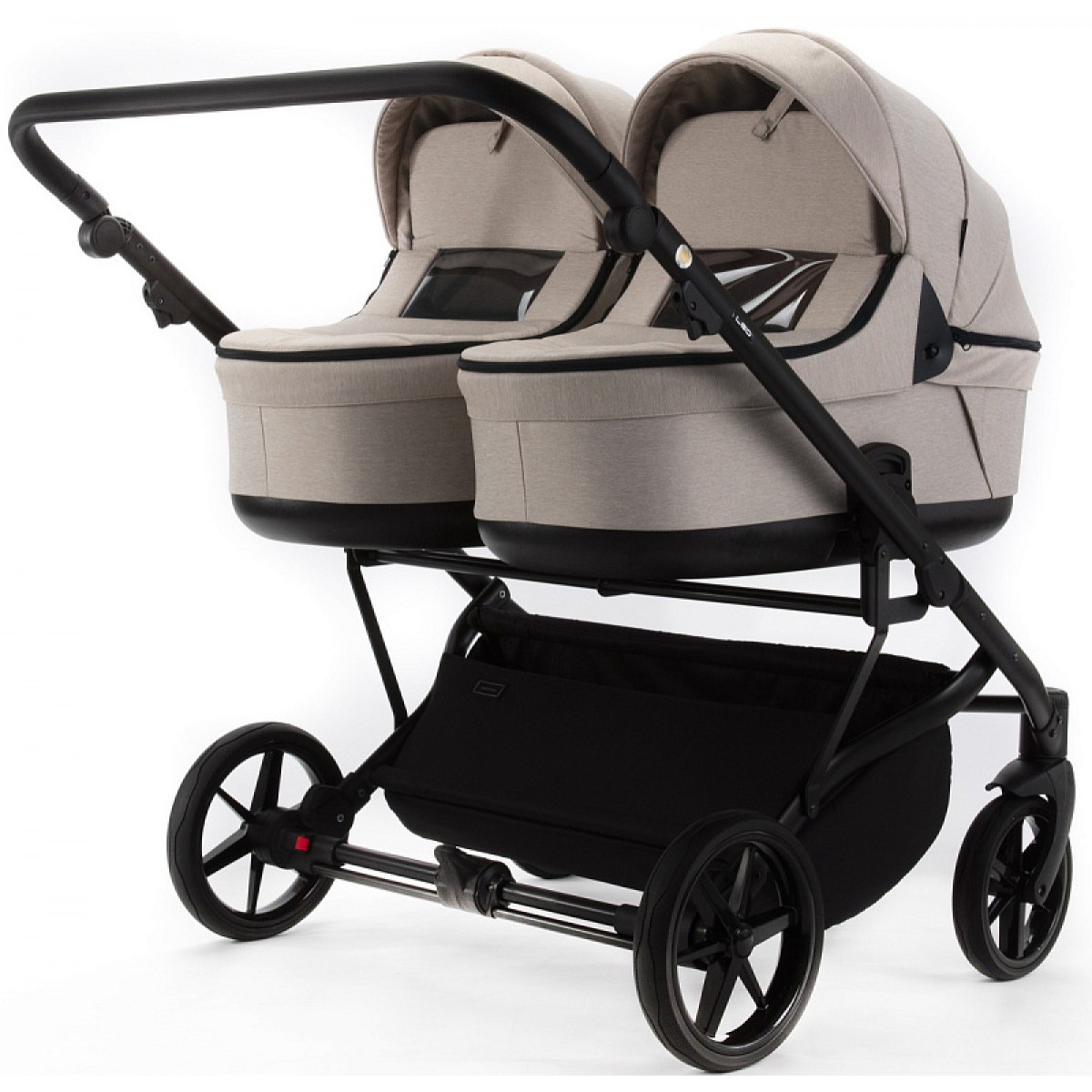 Adamex Leo Duo оснащена двумя легкими и компактными люльками, каждая весом по 3,8 кг. Люльки складные, чтобы не занимать много места для хранения и для облегчения веса всей коляски. Внутренние части люлек выполнены из мягкого хлопка, с поролоновыми матрасиками и съемными чехлами, которые можно стирать. В люльках предусмотрена регулируемая вентиляция в основании и изголовье под отстегивающимся клапаном.