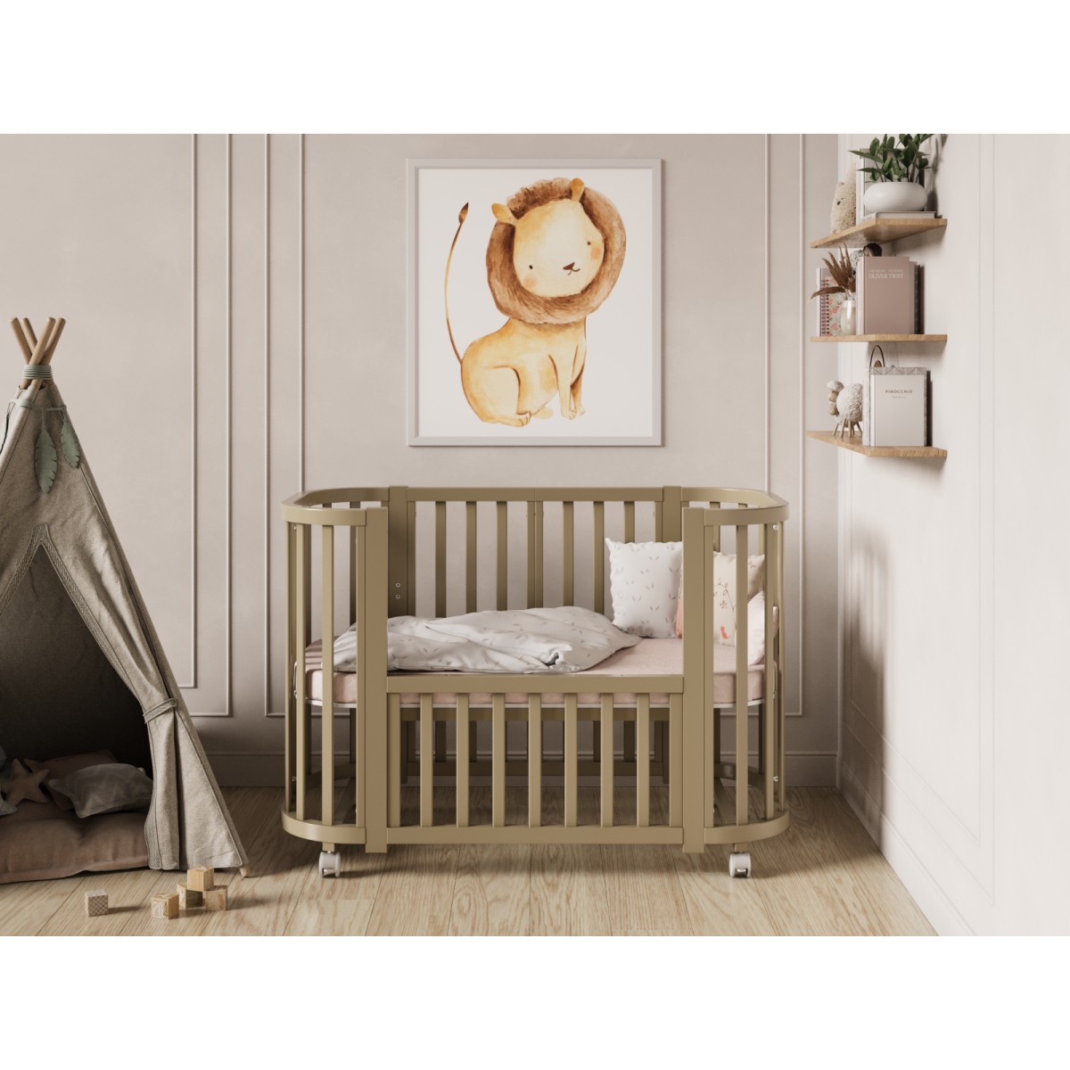 Сочетает в себе уют и удобство, имеет комплект расширения, который позволяет трансформировать кровать из колыбели для новорожденного в полноразмерную кровать для подросшего малыша.