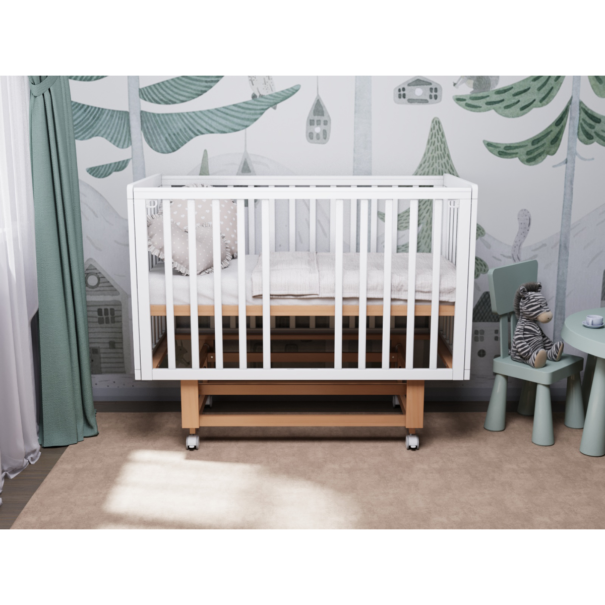 -Верхние планки с прозрачными силиконовыми накладками для защиты поверхности кроватки и зубок малыша.