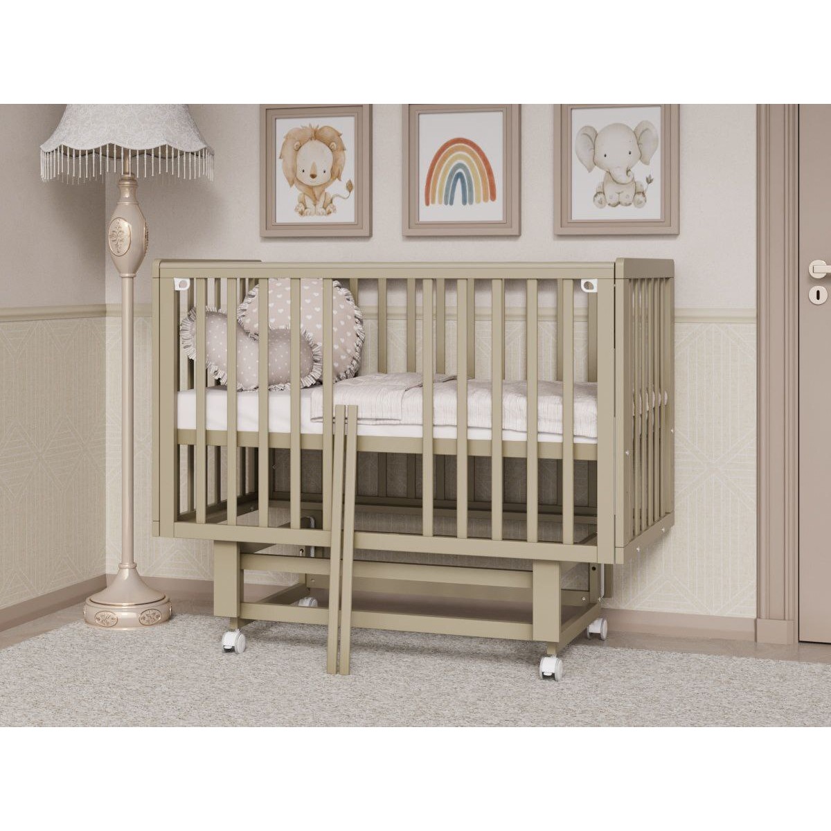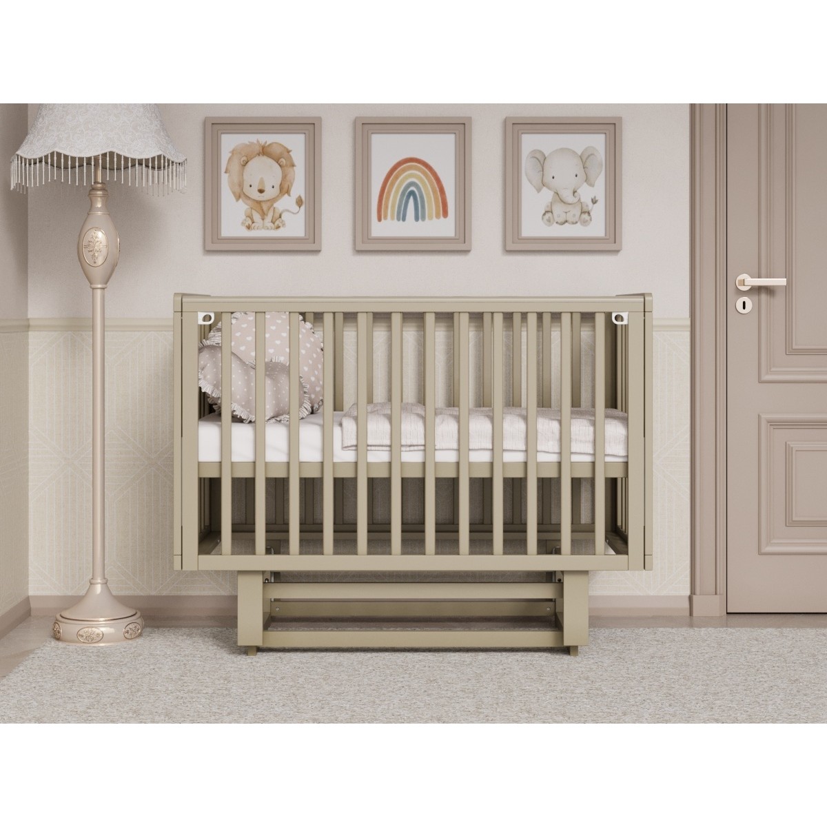 Кроватка детская Lunna Rita с автостенкой, маятником и колесами цвет: кашемир