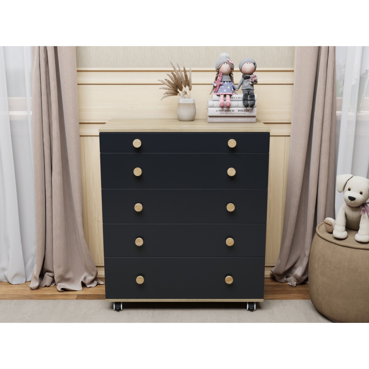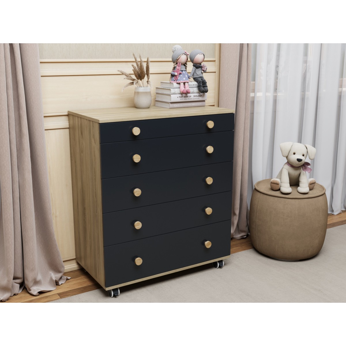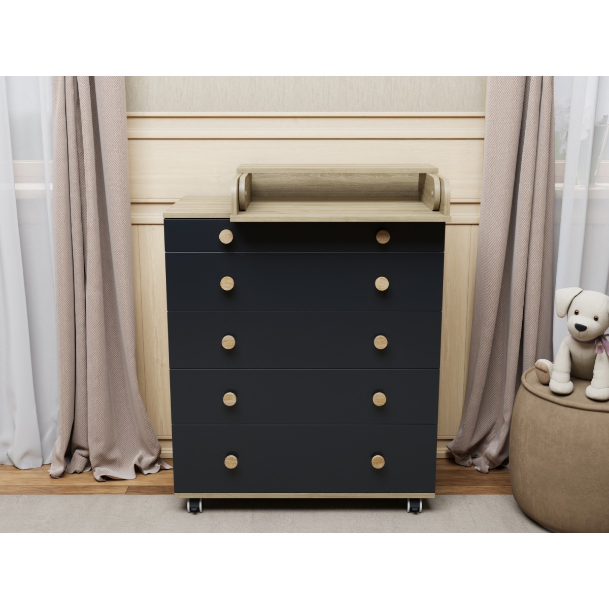Комод пеленальный Lunna Teddy Lite с колесами на 5 ящиков + пеленальная зона цвет: дуб/графит