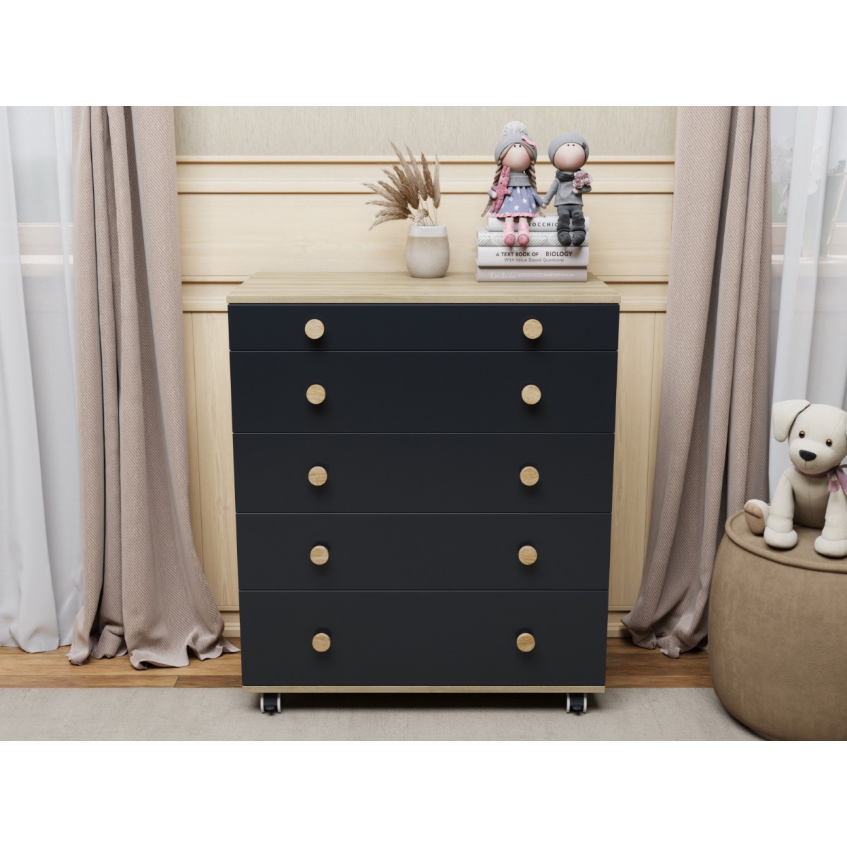 Комод пеленальный Lunna Teddy с колесами на 5 ящиков + пеленальная зона цвет: дуб/графит