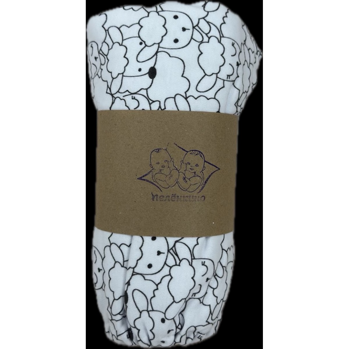 Пеленка-простынка трикотажная на резинке в детскую кроватку 120*60 см цвет: барашки черные