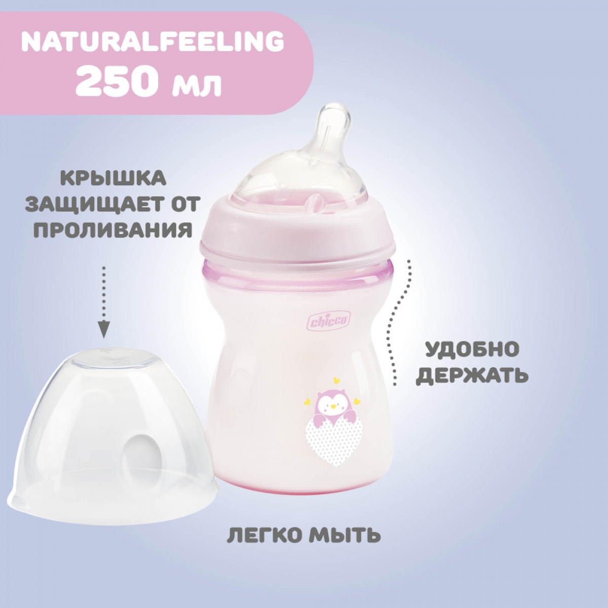 Бутылочки Сhicco серии Natural Feeling доступны в 3 размерах: 150 мл, 250 мл и 330 мл.
