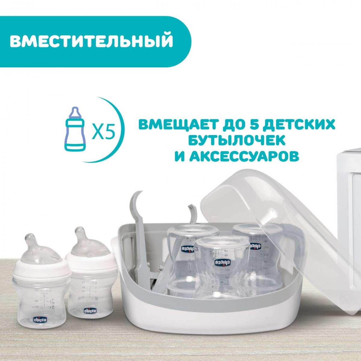 Компактные габариты и продуманная конструкция делают стерилизатор совместимым с большинством микроволновых печей. Вместительный внутренний объем позволяет одновременно обрабатывать бутылочки, соски и другие аксессуары для кормления. Простота использования (достаточно добавить воду и установить нужное время) делает этот метод стерилизации одним из самых практичных для повседневного применения.