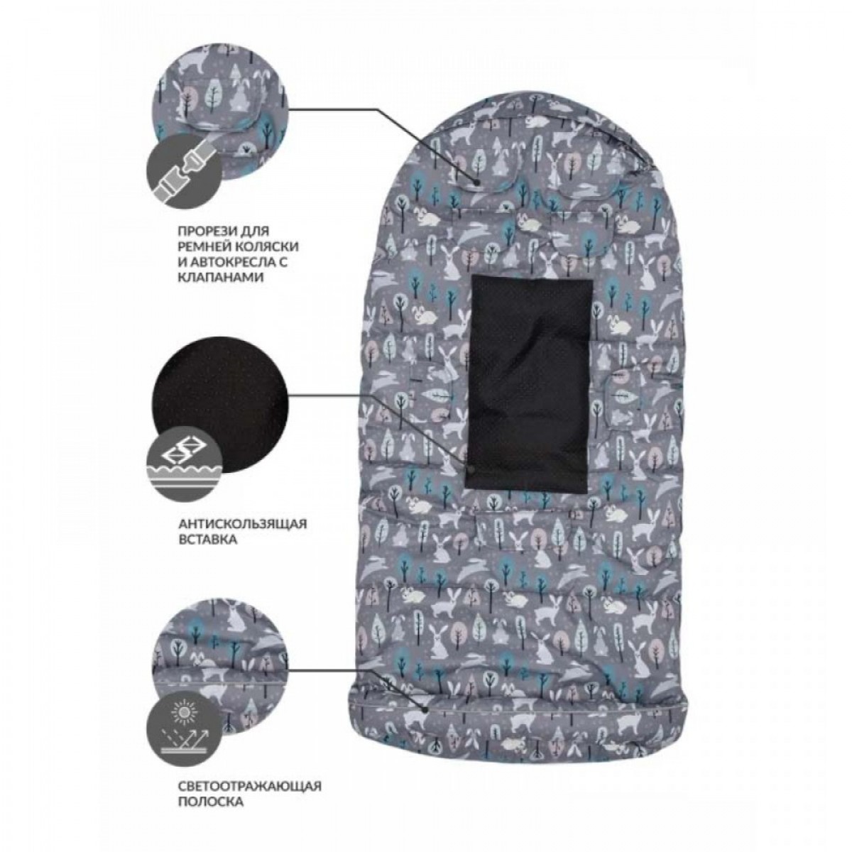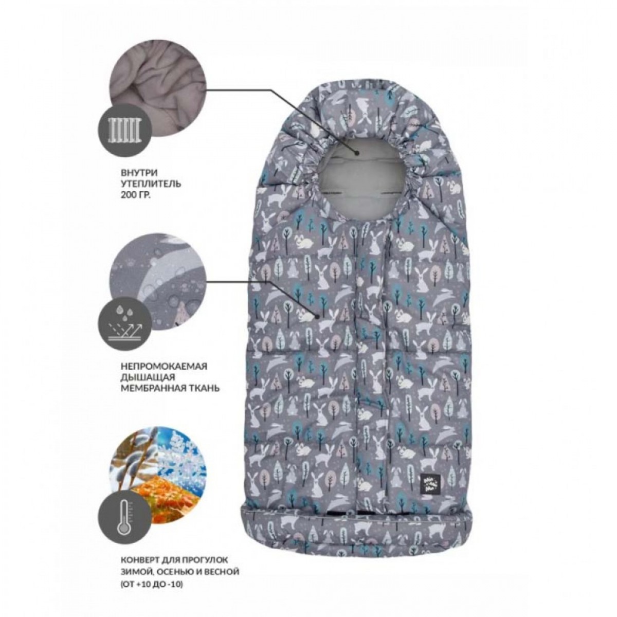 Прогулочный мембранный конверт в коляску Мимими от -30°С до +10°С "Серые зайцы"