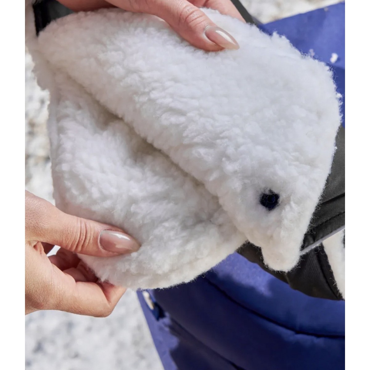 Универсальная муфта для рук на коляску и сани. Она защитит руки от замерзания, обветривания во время прогулок поздней осенью, зимой и весной. Крепление на кнопках позволяет быстро снимать и надевать муфту на коляску или санки со сплошной ручкой. Овчина, синтетический утеплитель и непромокаемая мембрана обеспечивают комфорт в любую погоду при температуре от +10 до -20 C. Муфта – аксессуар для колясок и детских саней, который повысит комфортность прогулок в холодную, сырую, ветреную или дождливую погоду. Она сохранит руки родителей в тепле, при этом освободит от ношения перчаток, варежек и рукавиц, которые нужно снимать, например, при посещении магазина. Кроме прямого назначения муфта может использоваться как утеплитель в коляску, на скамейку, сиденье авто. Также ее можно накинуть на ноги, если у ребенка чистая обувь. Внутри чехла на ручку коляски – натуральная овечья шерсти. Во время производства муфты она не подвергалась воздействию агрессивных химических веществ и красителей, поэтому сохранила антибактериальные свойства. Второй слой муфты для детской коляски выполнен из синтетического уплотнителя плотностью 200 г/кв. м. Они позволяют коже «дышать» при положительной температуре, поэтому руки не потеют, и хорошо сохраняет тепло в морозную погоду. Плотное облегание исключает попадание холодного воздуха внутрь. Снаружи зимняя муфта с мехом покрыта плотной мембраной. Эта пароотводящая ткань обеспечивает защиту от промокания благодаря микроскопическим порам, которые меньше капли воды в тысячи раз.