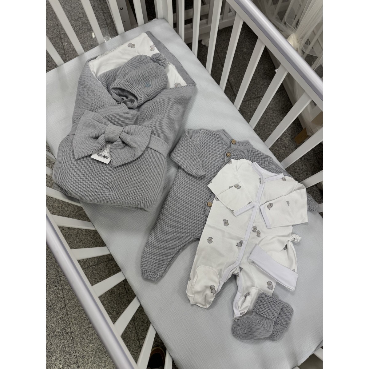 Комплект на выписку из роддома 8 предметов "ALPACA" цвет: серый /барашки серые 0363