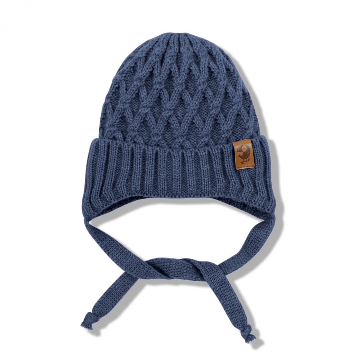 Красивая стильная вязаная шапочка из импортного мериноса. Хорошая посадка по голове малыша, хлопковая подкладка внутри шапочки позволяет носить ее не поддевая чепчик или хлопковую шапочку. Модель идет с завязками.