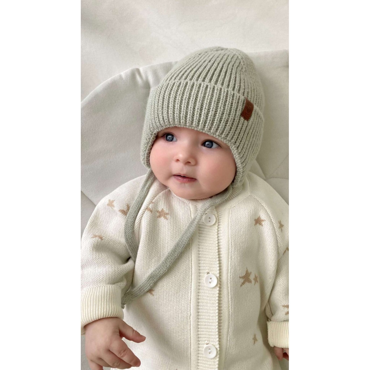 Красивая стильная вязаная шапочка из импортного мериноса. Хорошая посадка по голове малыша, хлопковая подкладка внутри шапочки позволяет носить ее не поддевая чепчик или хлопковую шапочку. Модель идет с завязками.