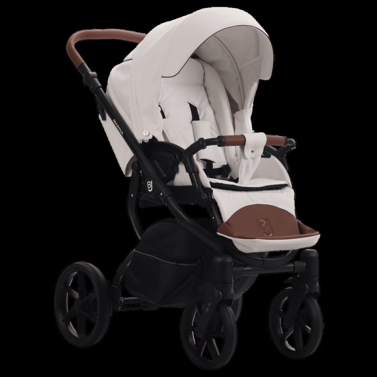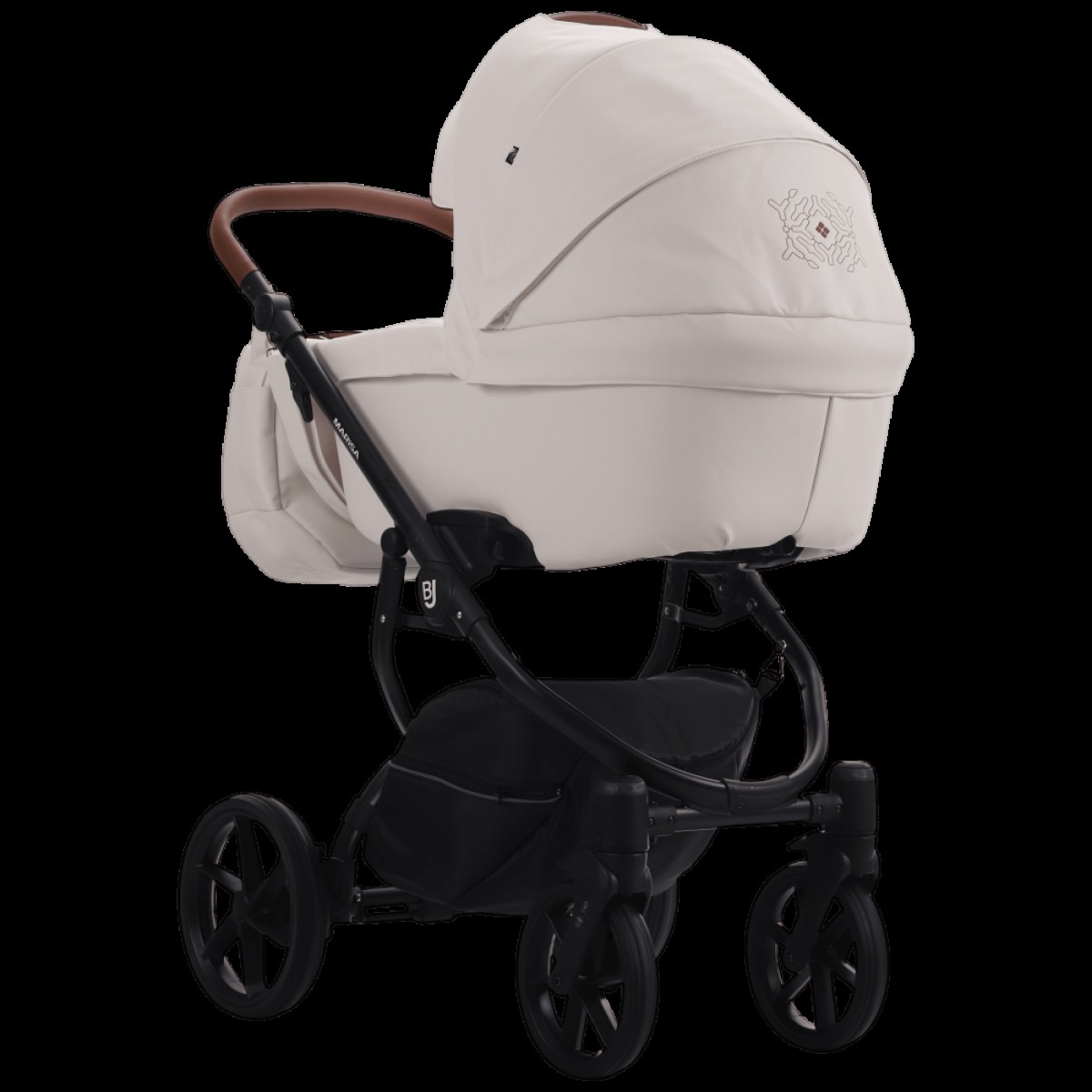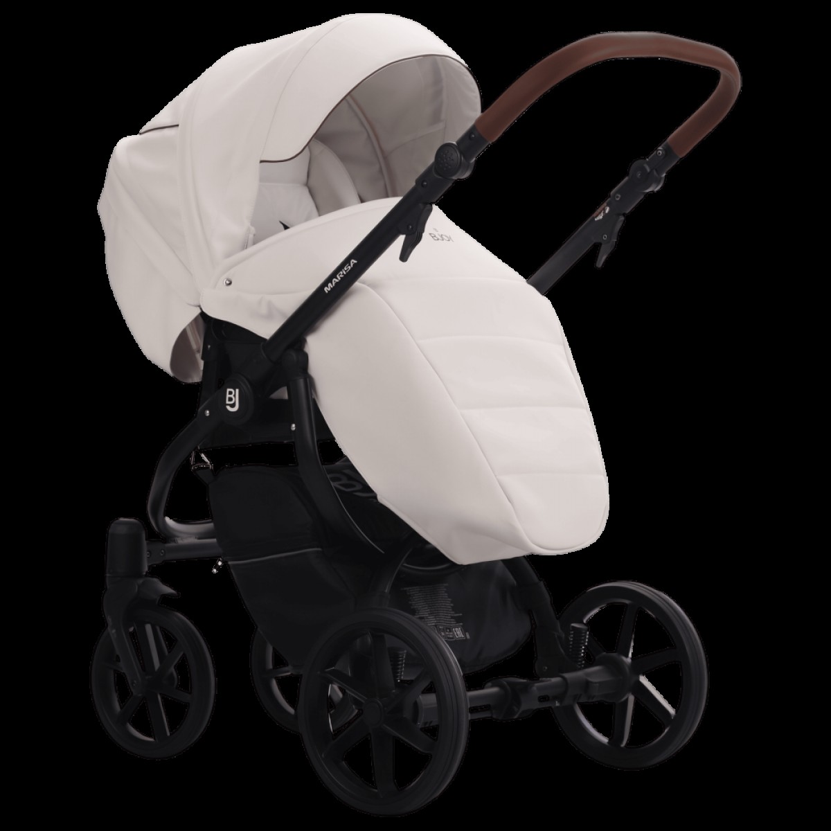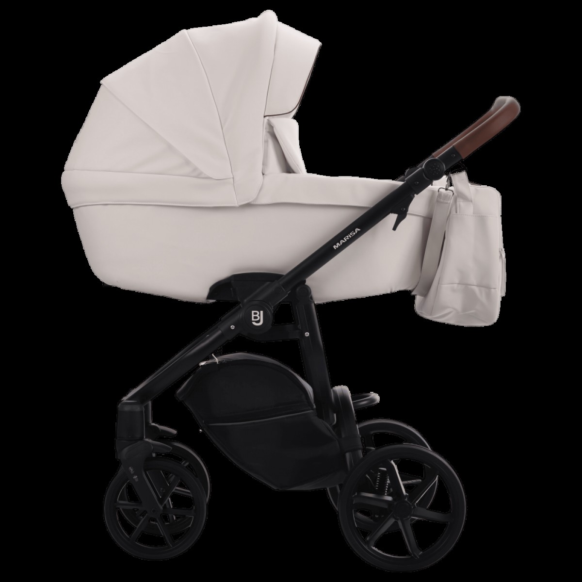Новая версия коляски Marisa выглядит стильно благодаря привлекательным деталям. Строчка на матрасике, логотип Bjoy на подножке и качественная обивка создают уникальный образ.