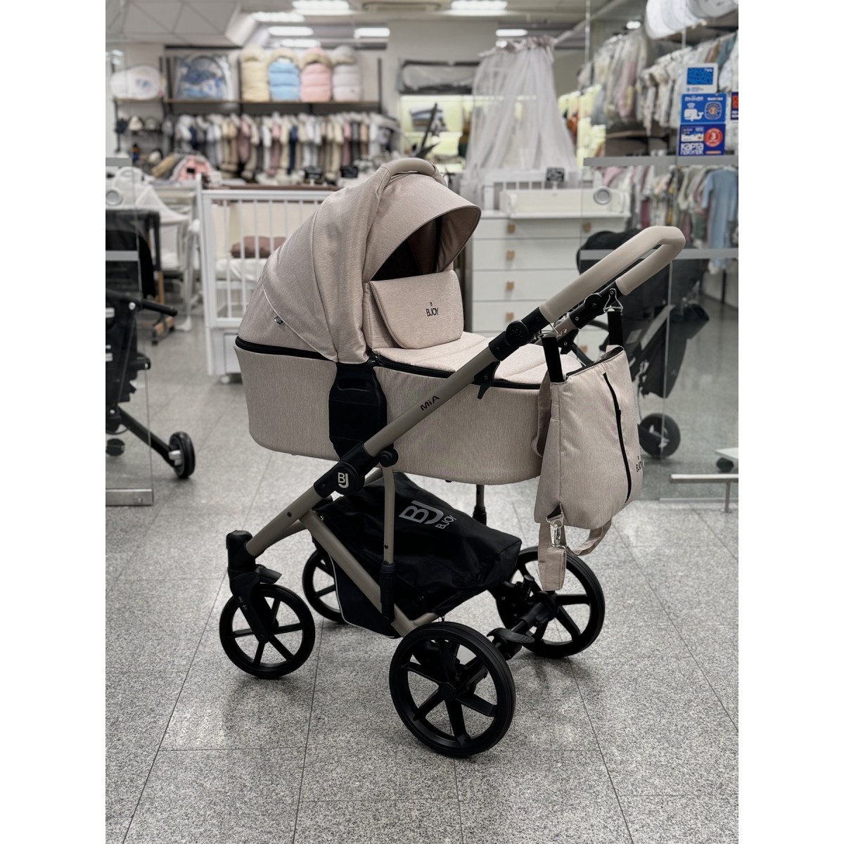 Коляска BJOY MIA предназначается для малышей с рождения до трех лет. За счет рамы из алюминия, новаторской подвески и поворотных колес, коляска обладает плавным ходом и отличной маневренностью. Ширина шасси позволяет комфортно передвигаться по узким улицам и тротуарам.