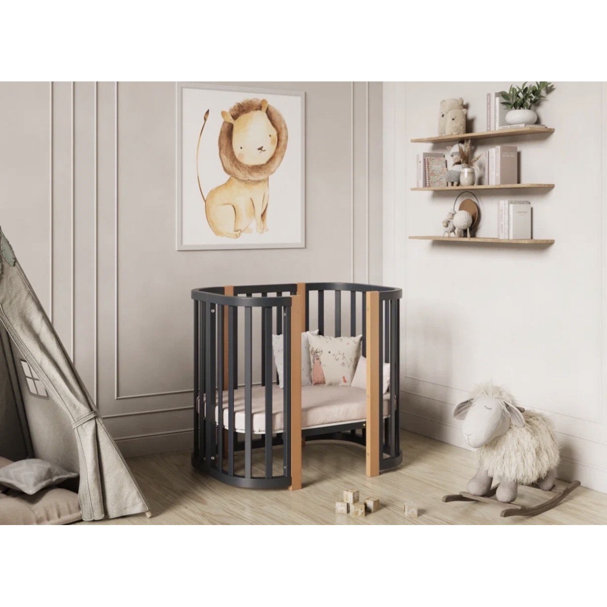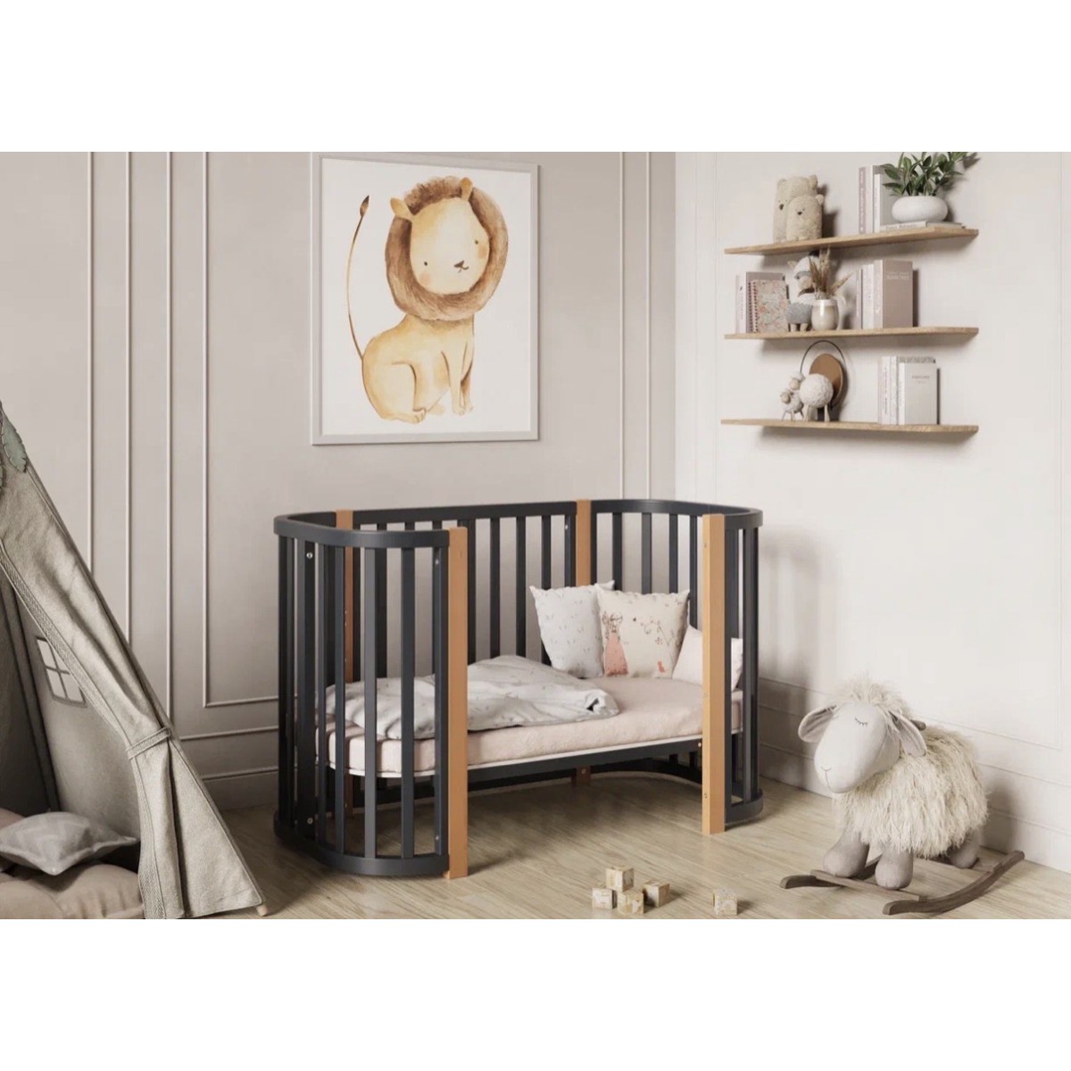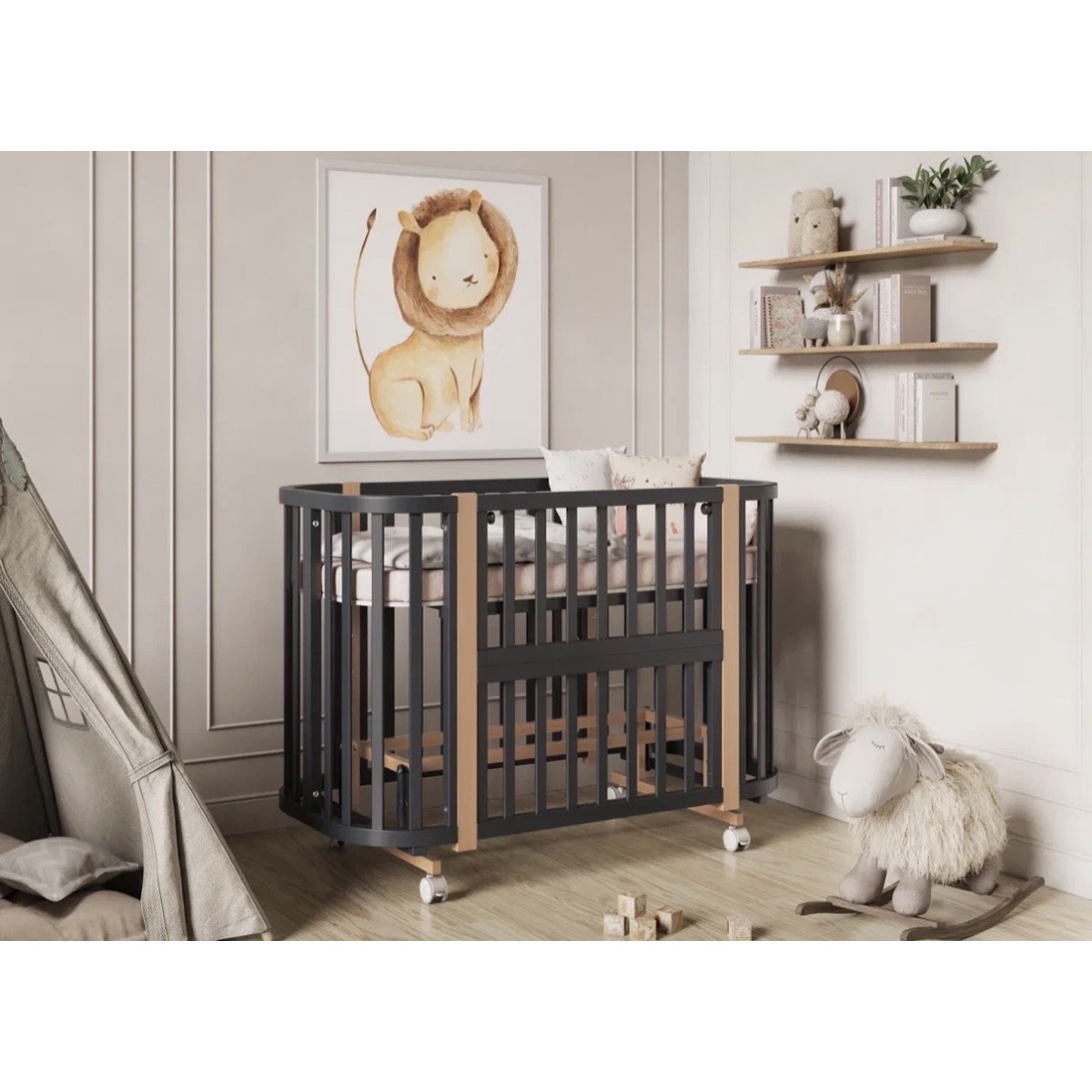 Детская кровать – трансформер Lunna SONATA с наклоном дна, идеальное решение для детей от рождения до 4 лет.