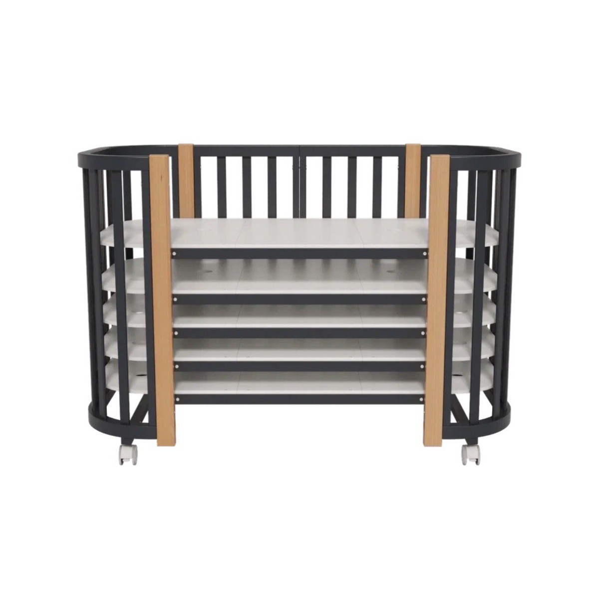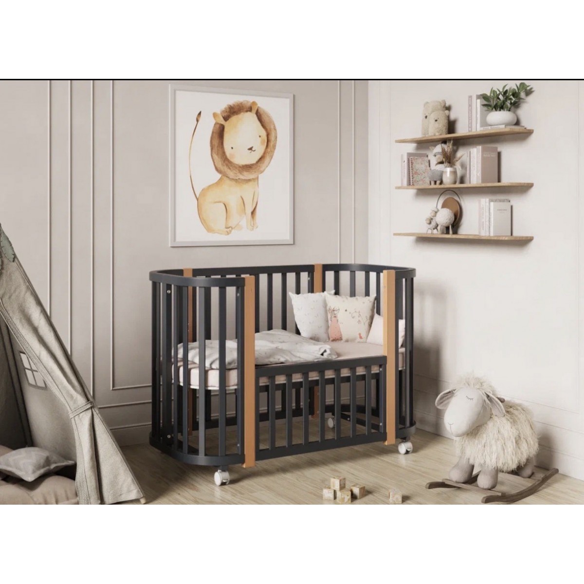 Кроватка-трансформер детская Lunna Sonata с маятником+ колеса цвет: графит/ бук