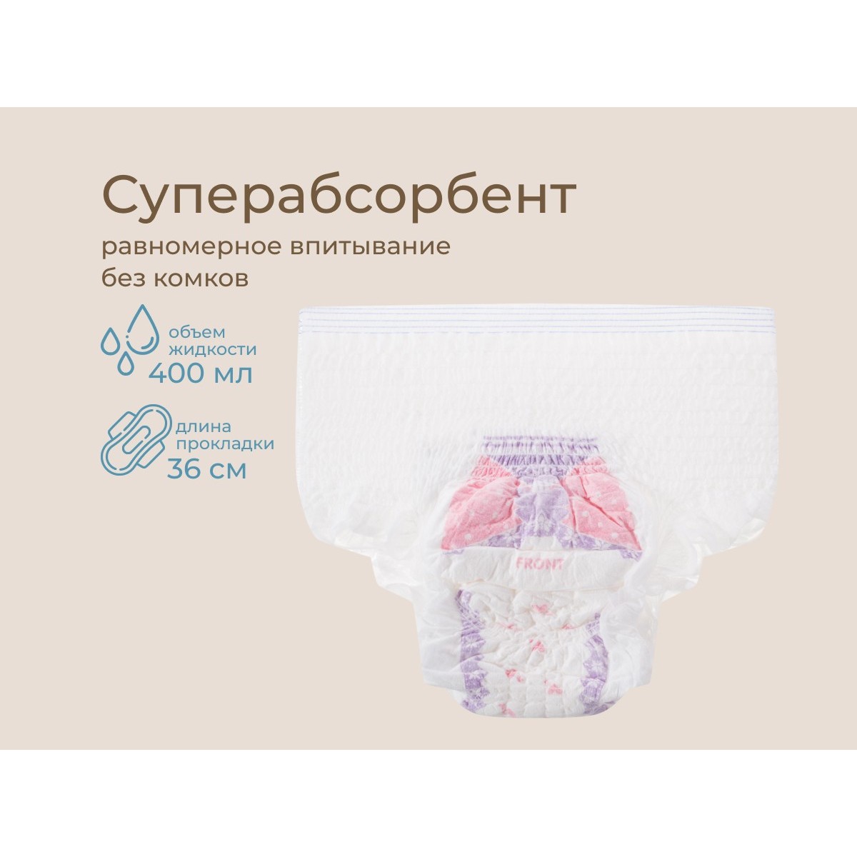 Гигиенические трусы сочетают свойства одноразовых трусов для роддома и послеродовых прокладок. Изделие адаптируется под фигуру и остается незаметным под одеждой. Трусы легко надеваются и имеют утягивающий эффект. Хлопковая текстура позволит коже дышать, а тонкая ткань и мягкие швы будут ощущаться как хлопковое нижнее белье. Дизайн трусов повторяет анатомические особенности тела. Высокие бортики обеспечат защиту от протекания со всех сторон. Гигиеническая прокладка длиной 36 см впитывает до 400 мл влаги. Впитывающий слой из суперабсорбента и целлюлозной ваты моментально превращается в гель: это позволяет надежно удержать жидкость внутри прокладки и сохранить сухость и комфорт.