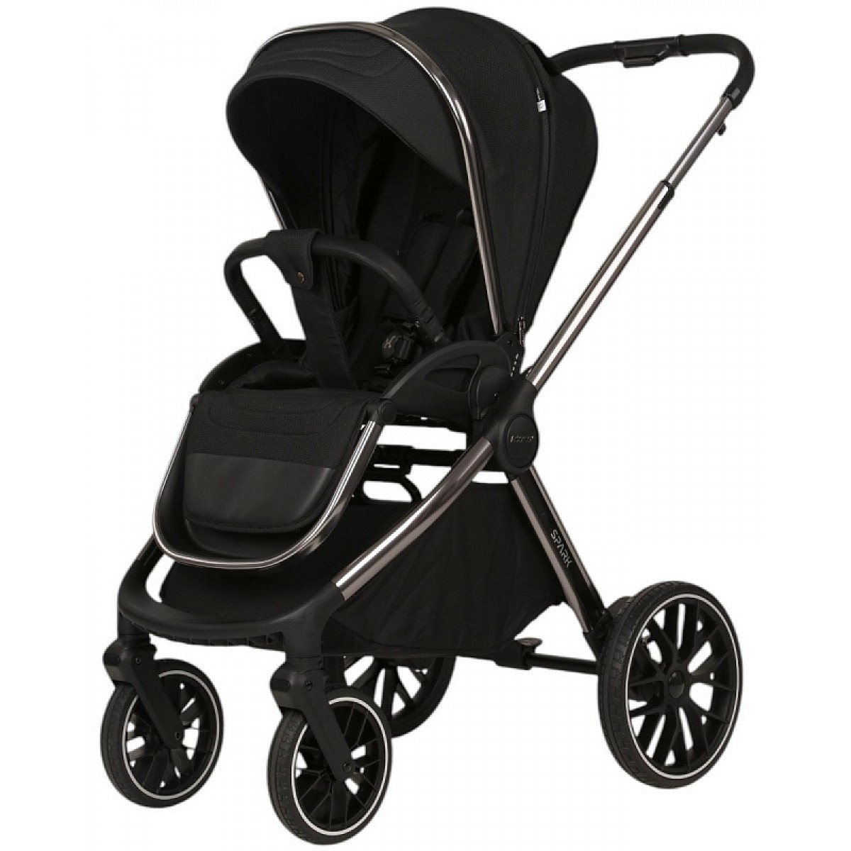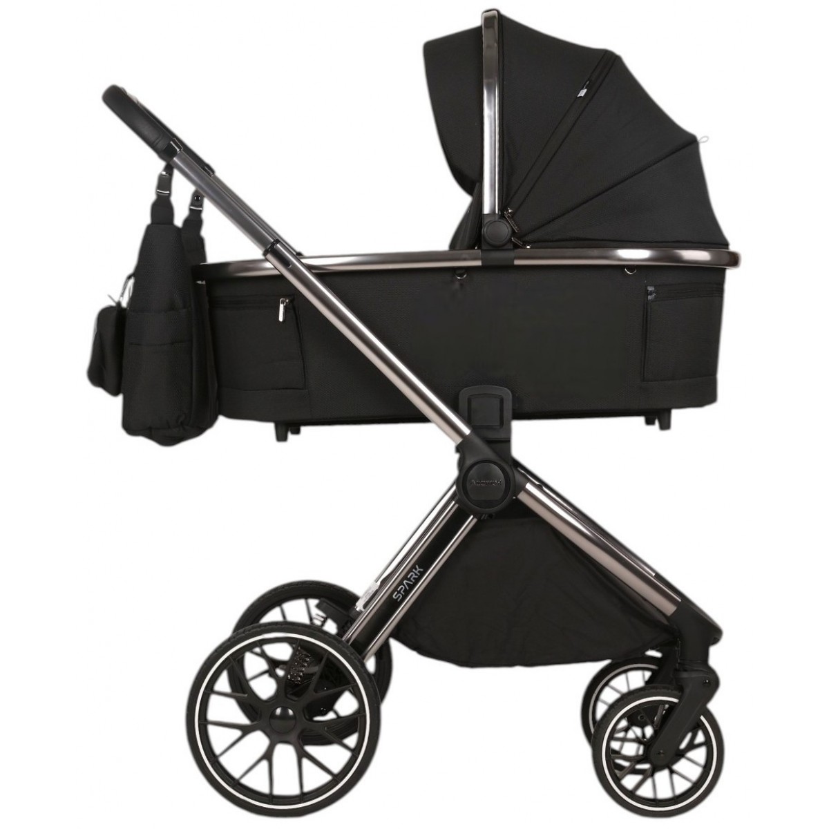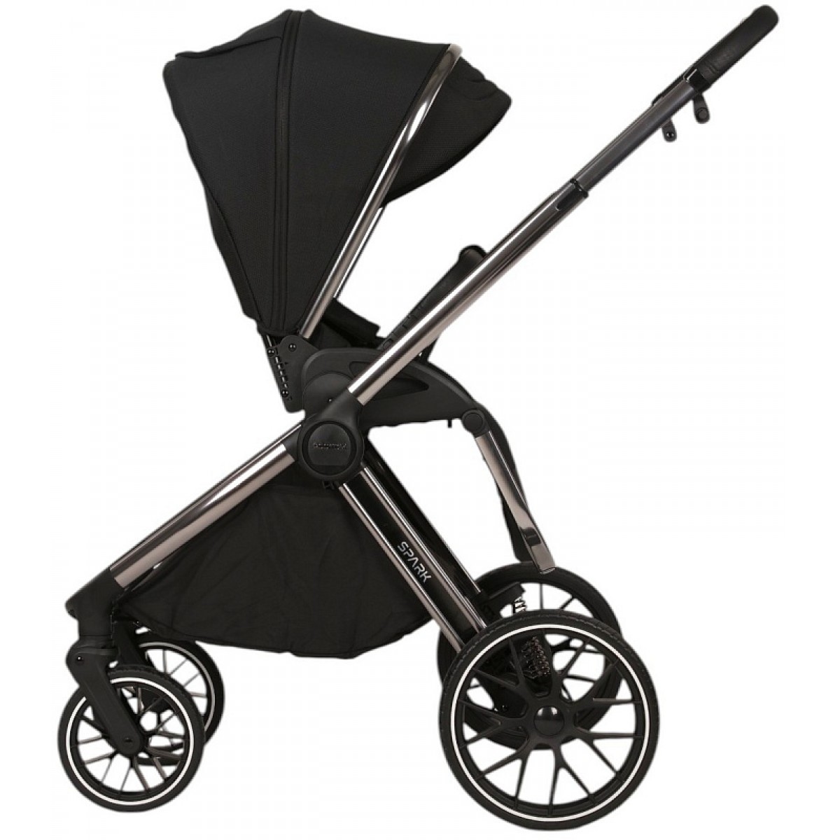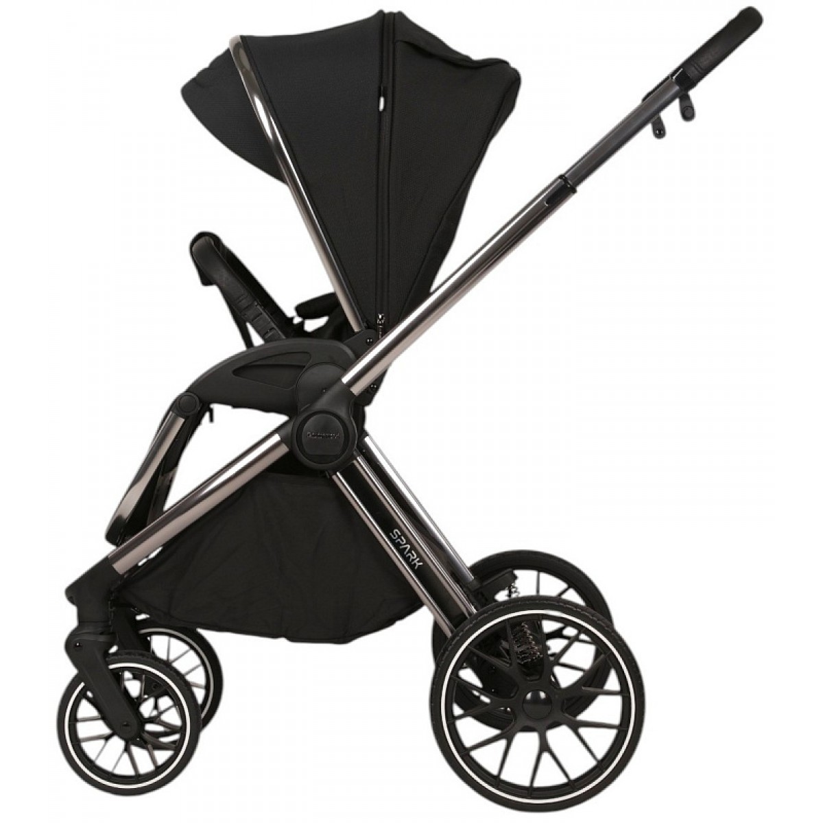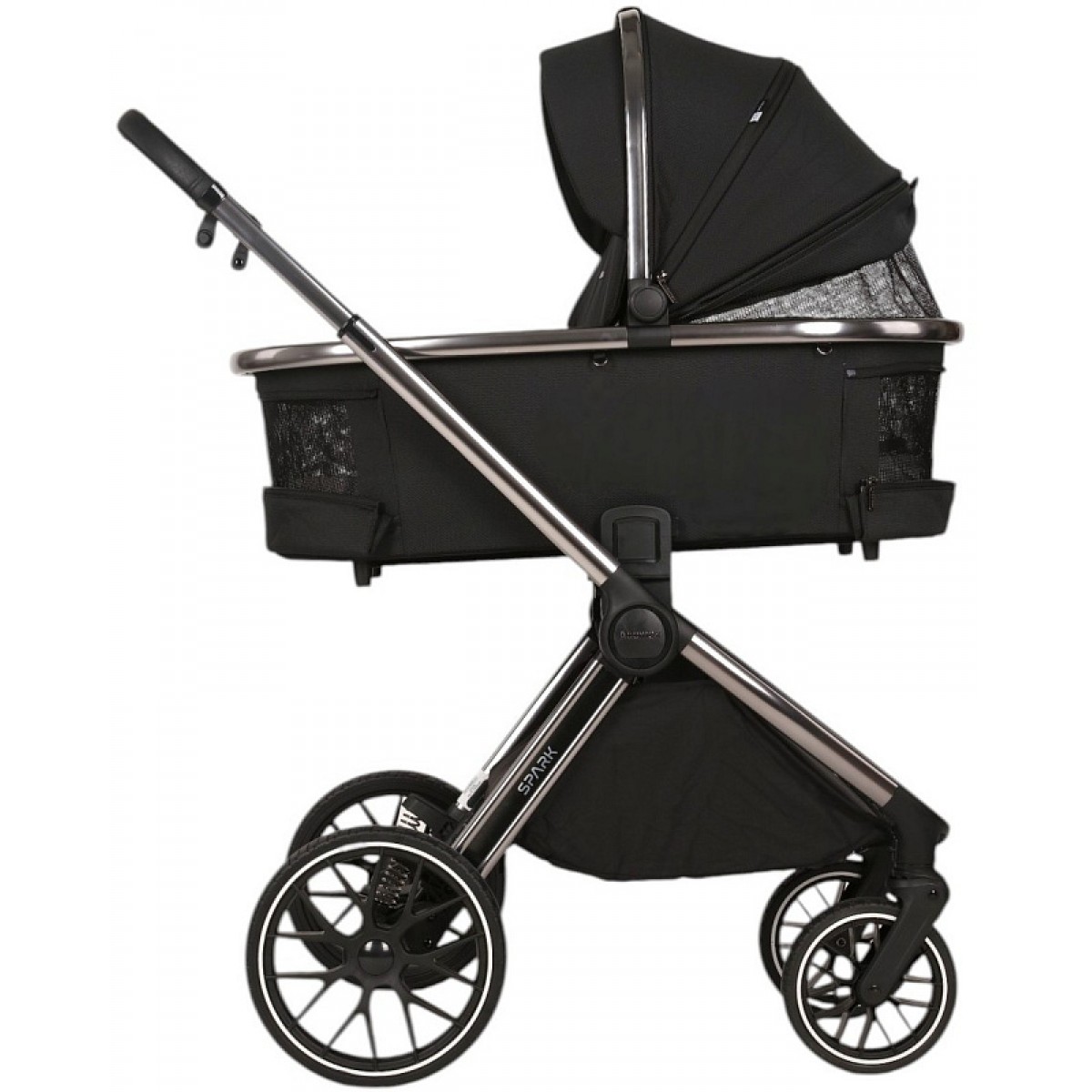 Люлька Spark легко снимается с рамы благодаря адаптерам с системой памяти. Она складывается для экономии места, что удобно для путешествий. Спинка коляски регулируется в трех уровнях, а барьерка сиденья вращается и наклоняется. Подставка для ног имеет три степени регулировки.
