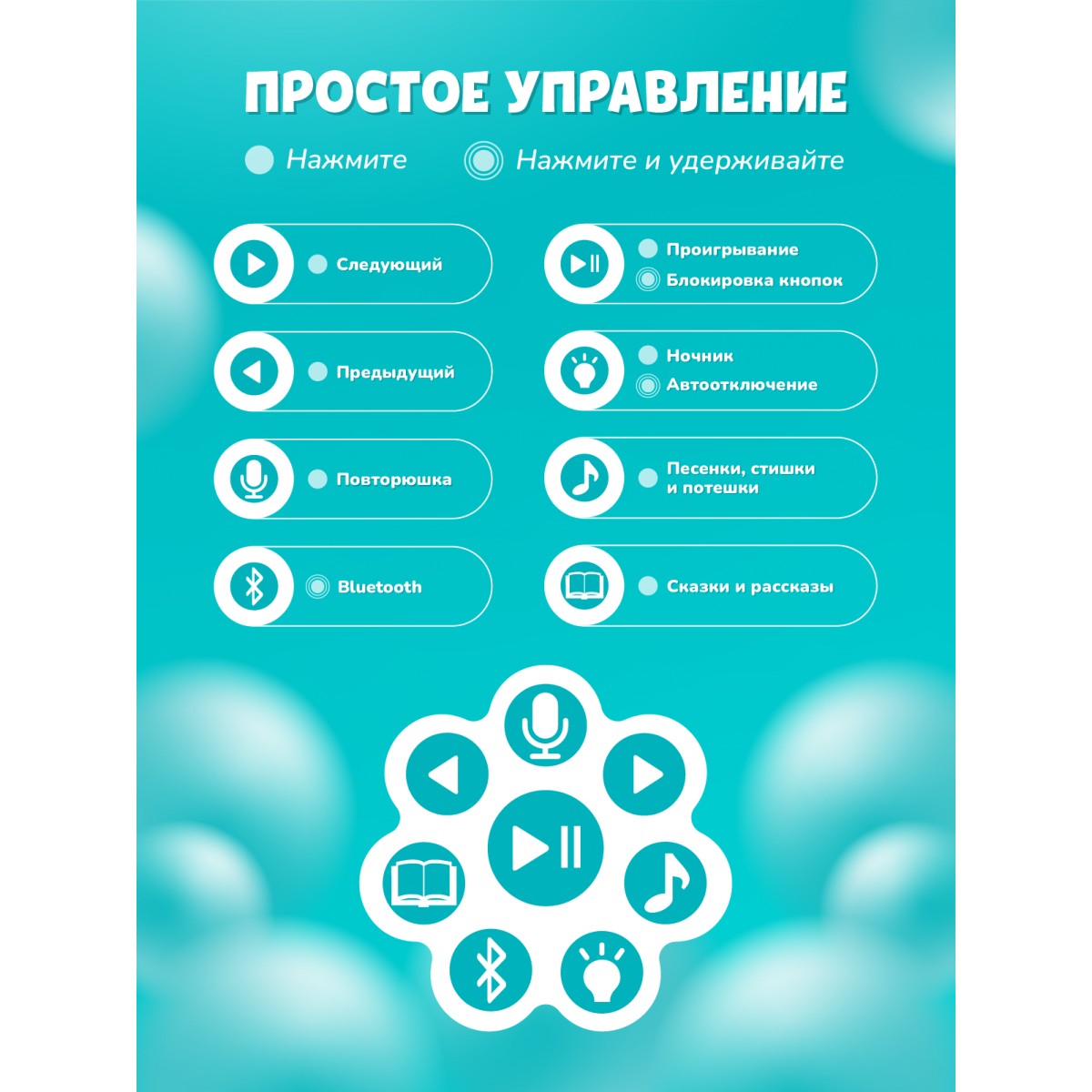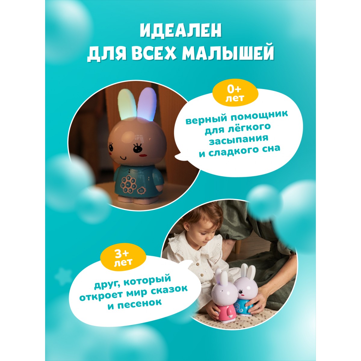 Безграничный контент, одобренный мамой: MicroSD-карта на 16Гб в комплекте. Есть функция Bluetooth: можно включать музыку и аудиосказки с любых устройств и использовать зайчика в качестве аудиоколонки.