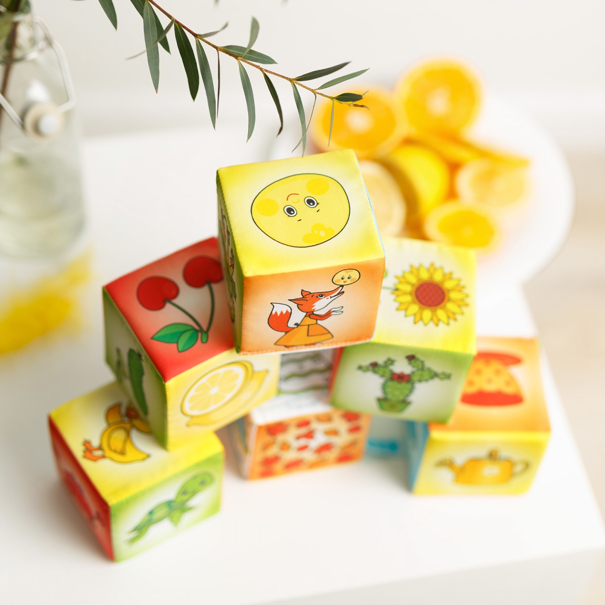 Набор из 6 мягких кубиков "Азбука цвета", созданная совместно со специалистом по раннему развитию детей Ириной Мальцевой, станет любимой игрушкой многих малышей с яркими и красочными рисунками.