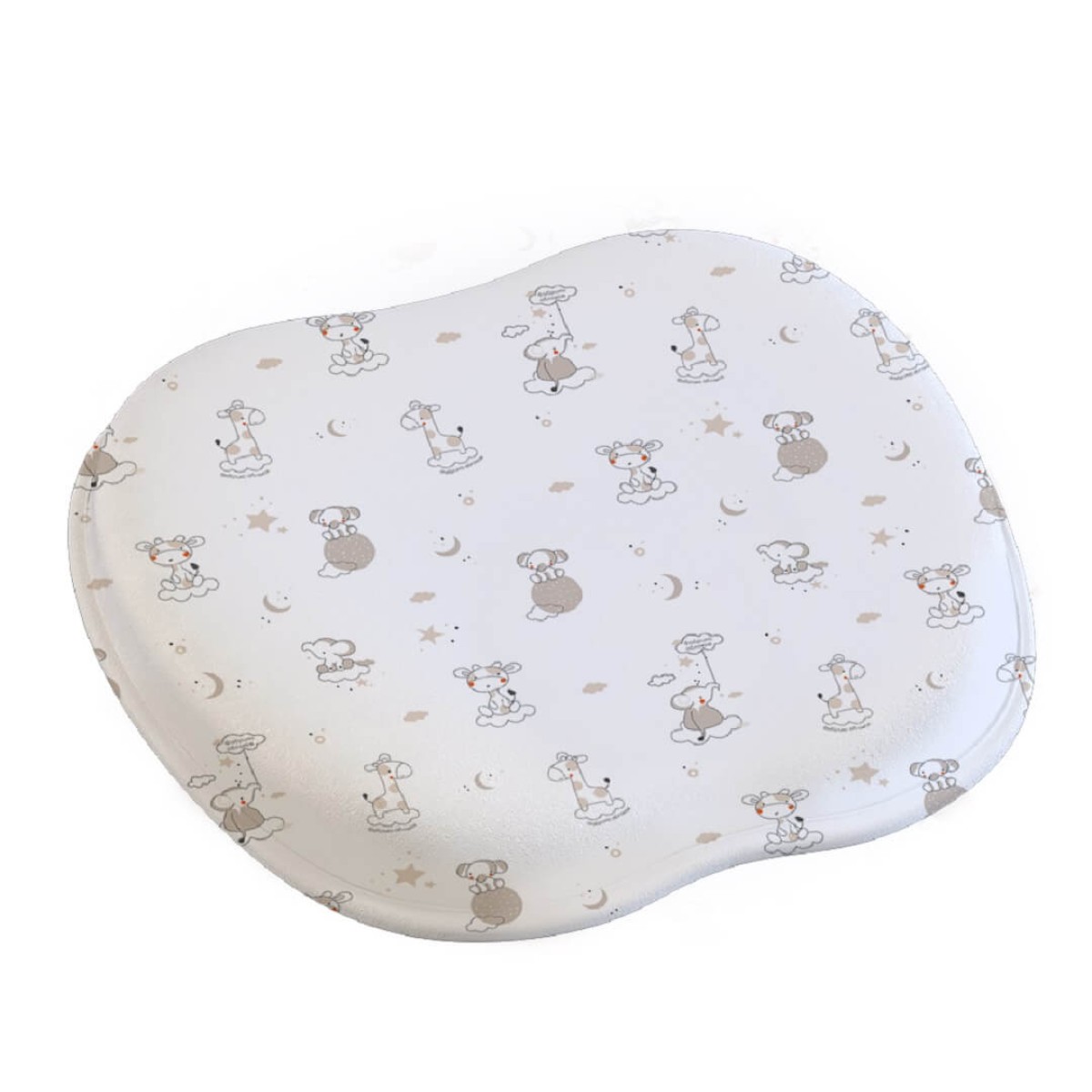 Подушка выполнена из вязкоэластичного пенополиуретана с эффектом памяти. После надавливания, подушка возвращается к первоначальной форме. Это безопасный для здоровья малыша материал, который часто используется в производстве детских и взрослых подушек.
