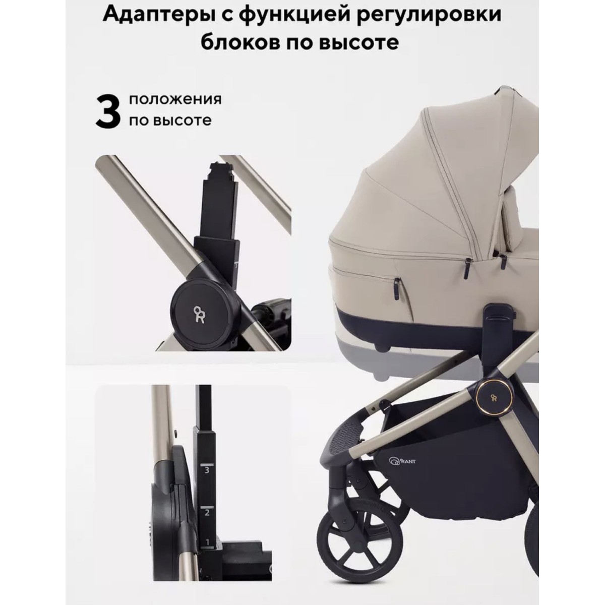 -быстросъемная люлька (система One Click Move) в этой модели дополнена кнопками памяти. Что позволяет непринужденно снимать спальный блок одной рукой.