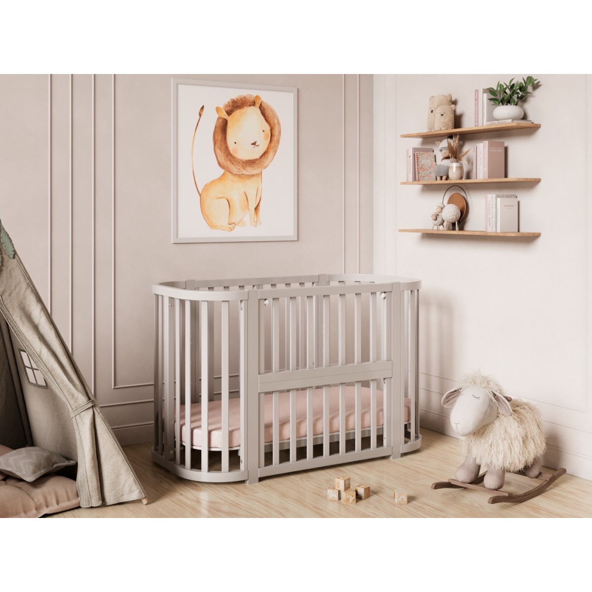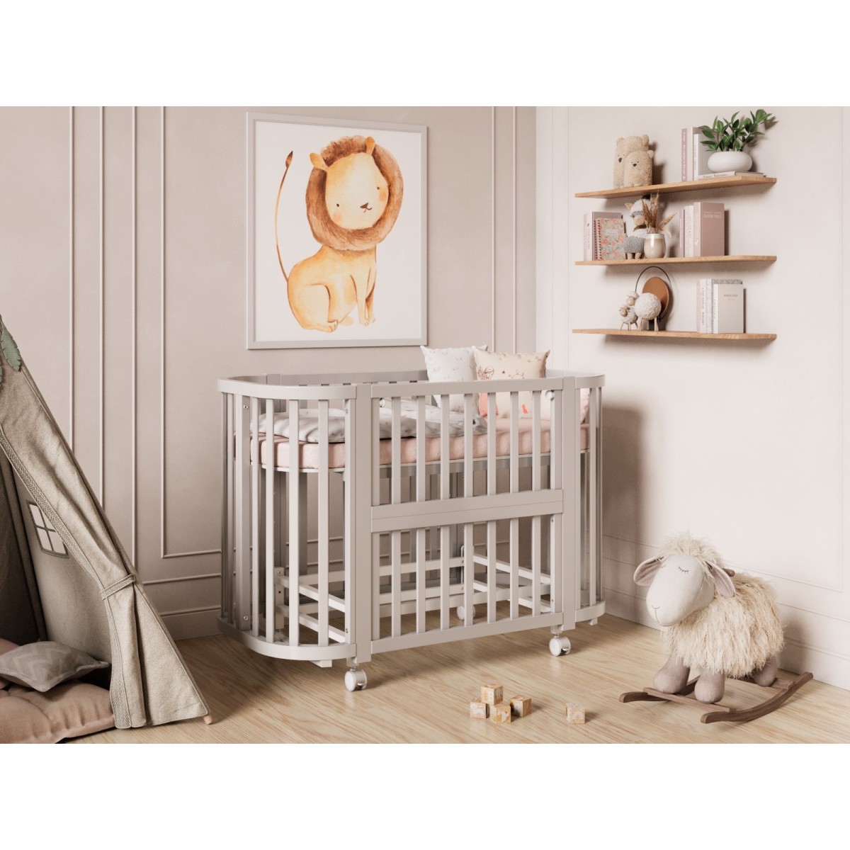 Детская кровать – трансформер Lunna SONATA с наклоном дна, идеальное решение для детей от рождения до 4 лет.