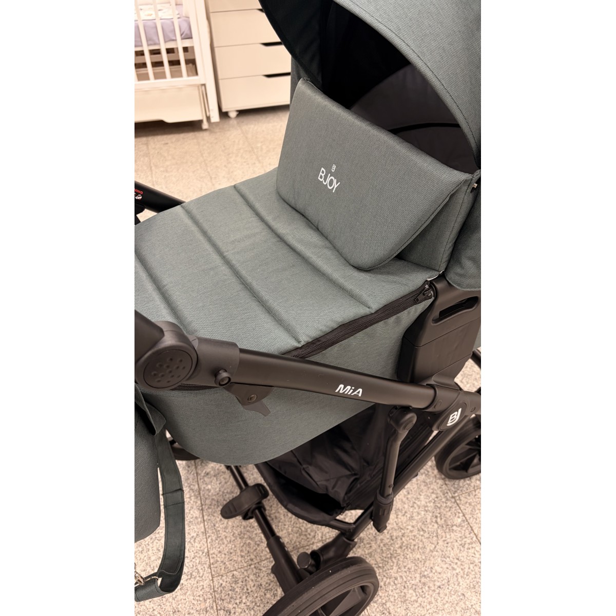 BJOY MIA – это еще и прогулочная коляска, предназначенная для растущего ребенка. Сиденье оснащено регулируемым капюшоном, что позволяет адаптировать его к текущим погодным условиям. Спинка и подножка регулируются, что позволяет принять удобное положение. Ремни «растут» вместе с ребенком, обеспечивая безопасность во время прогулок.