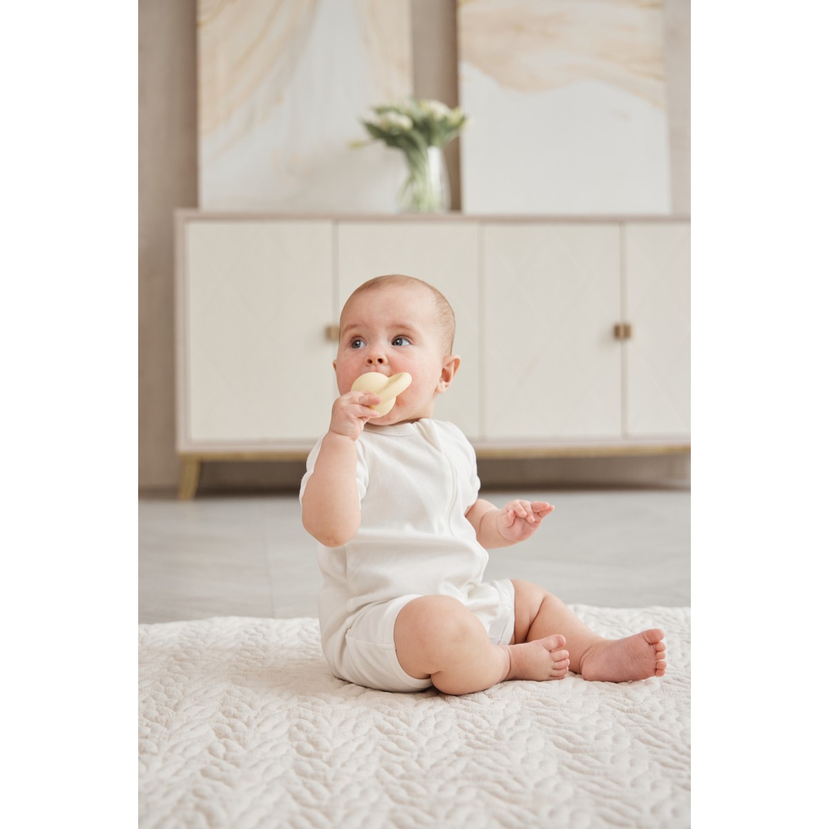 Невесомая погремушка с рельефной поверхностью бережно массирует дёсны при кусании, развлекает и успокаивает ребёнка, благодаря деликатному звучанию. Игрушка тренирует мелкую моторику, развивает слух и зрение. Покрытие погремушки — из пищевого Platinum-силикона высочайшего качества, в его составе отсутствуют токсины или вредные примеси. Игрушка выполнена в нежных, пастельных оттенках, гармонично дополняя интерьер детской.