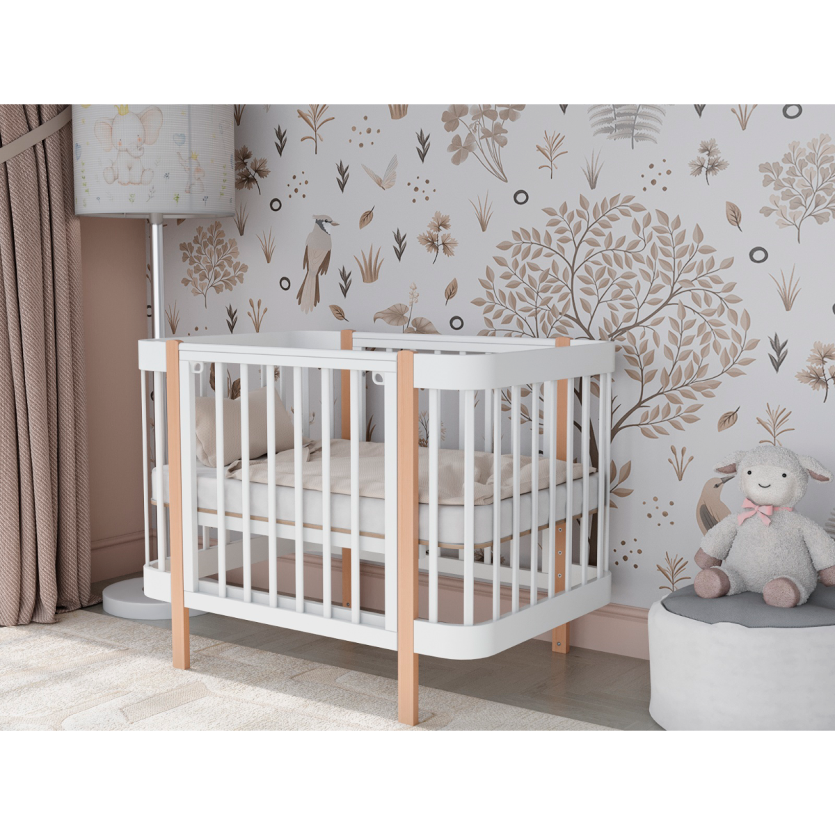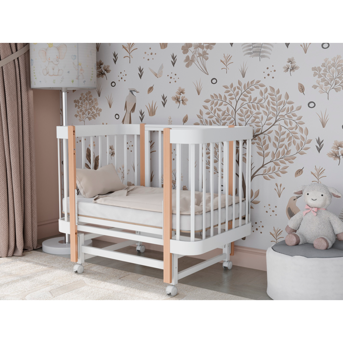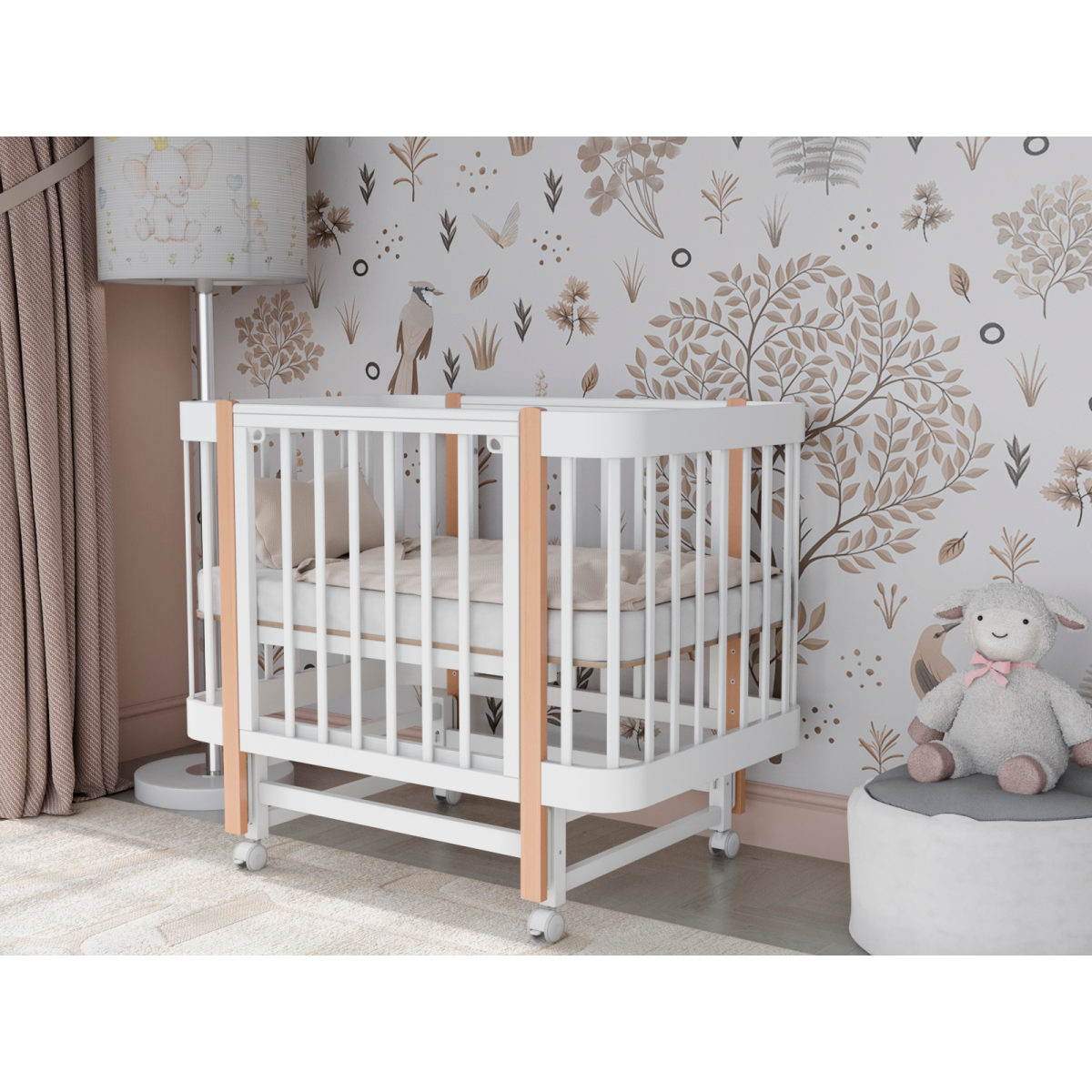 Кроватка детская Mimi с маятником и колесами + быстросъемная стенка цвет: белый/бук