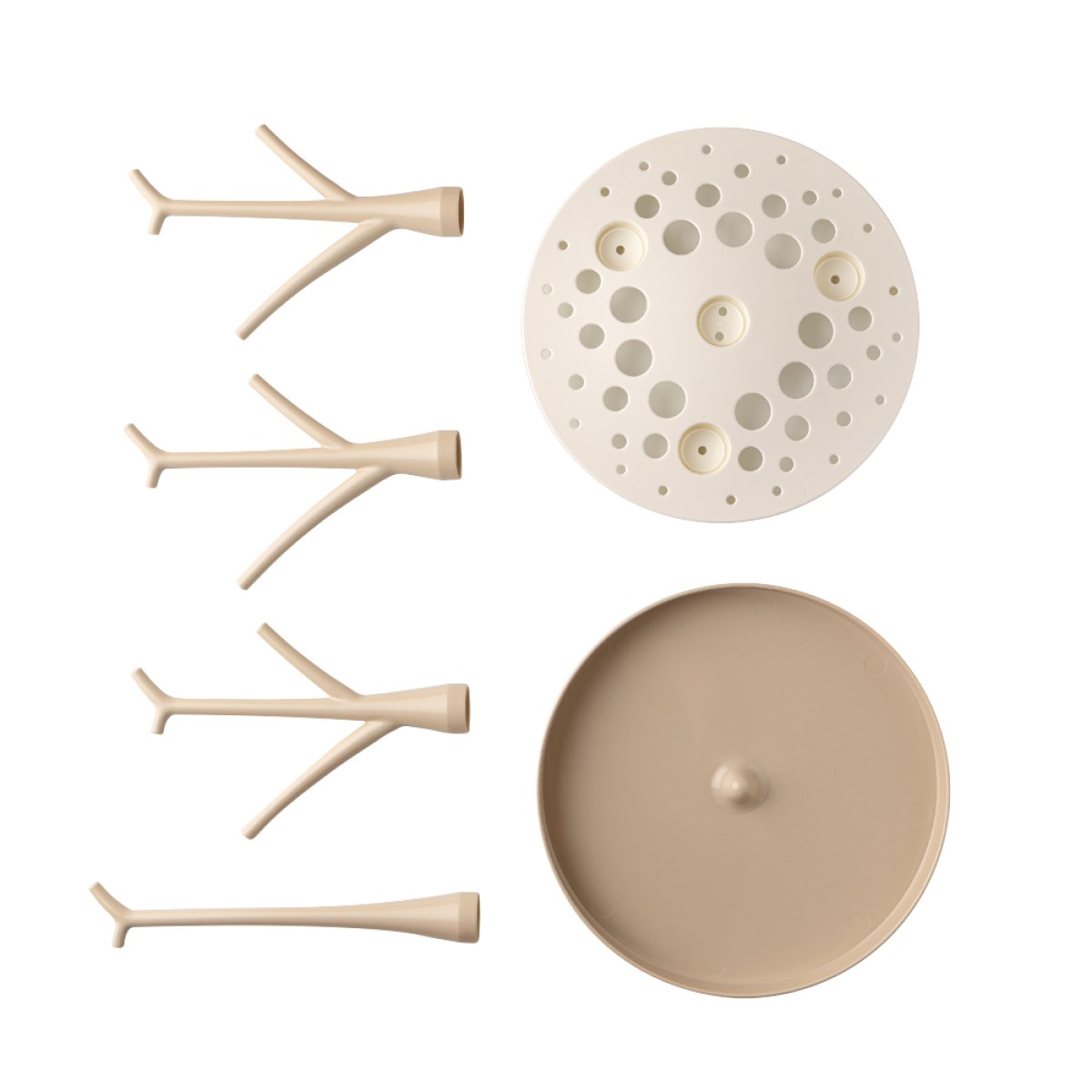 Сушилка edda позволяет компактно разместить детали молокоотсоса, бутылочки, пустышки, ниблеры и аксессуары для кормления — до 10 предметов одновременно.