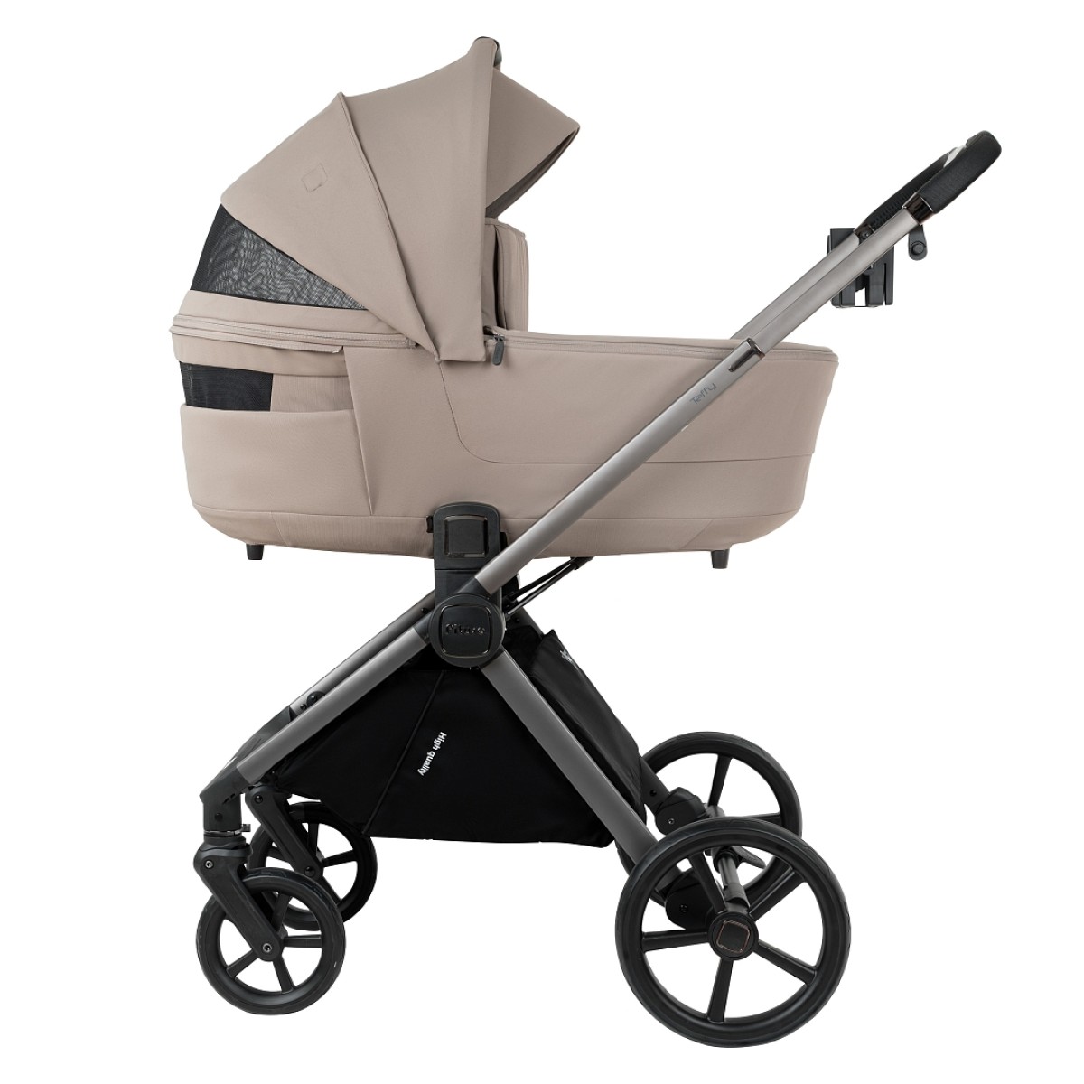 Отделка внутренней части люльки выполнена из хлопковой натуральной ткани, имеется дополнительный бортик для использования коляски в зимний период. Новый матрасик- гипоаллергенный и обладает антибактериальными свойствами. Двусторонний, из ткани и 3D-сетки. 3D-структура с более чем 80% объема воздуха. Внутри матрасика дышащий материал AirZone 3D.