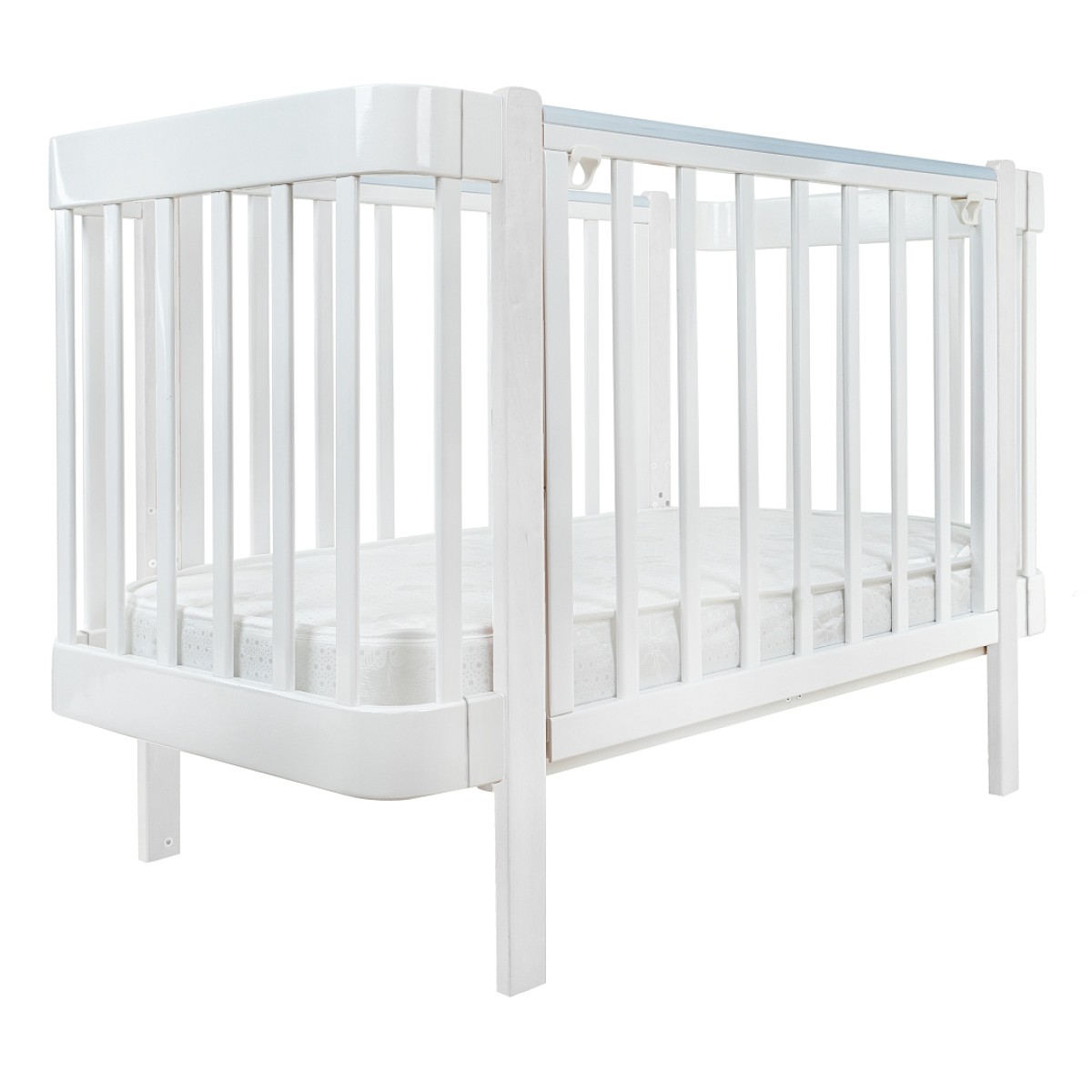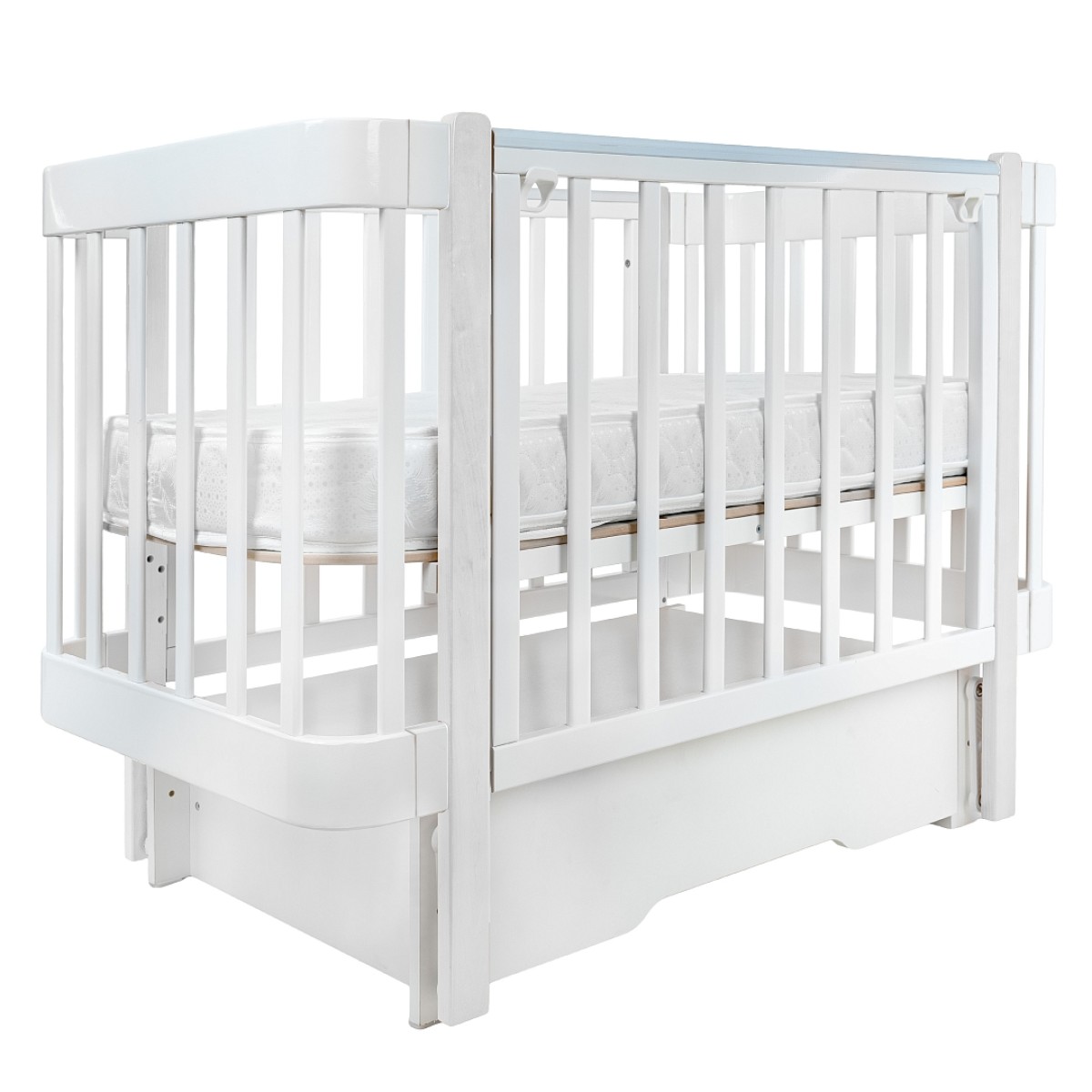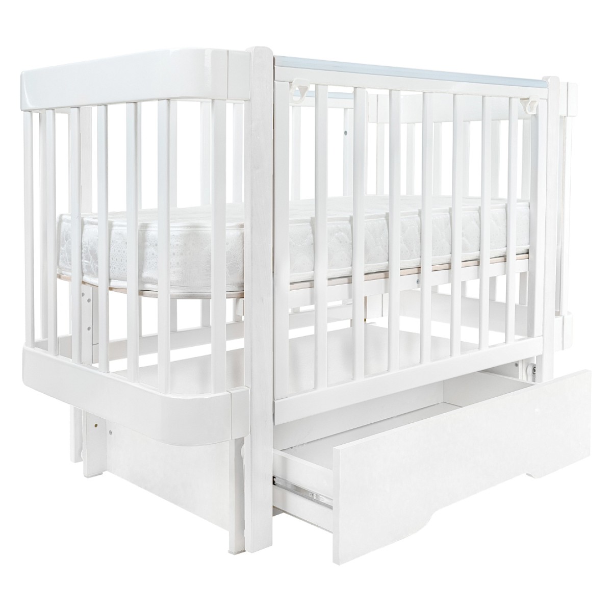 Кроватка деревянная Pituso Olivia с маятником, ящиком и быстросъемной автостенкой цвет: белый/белый