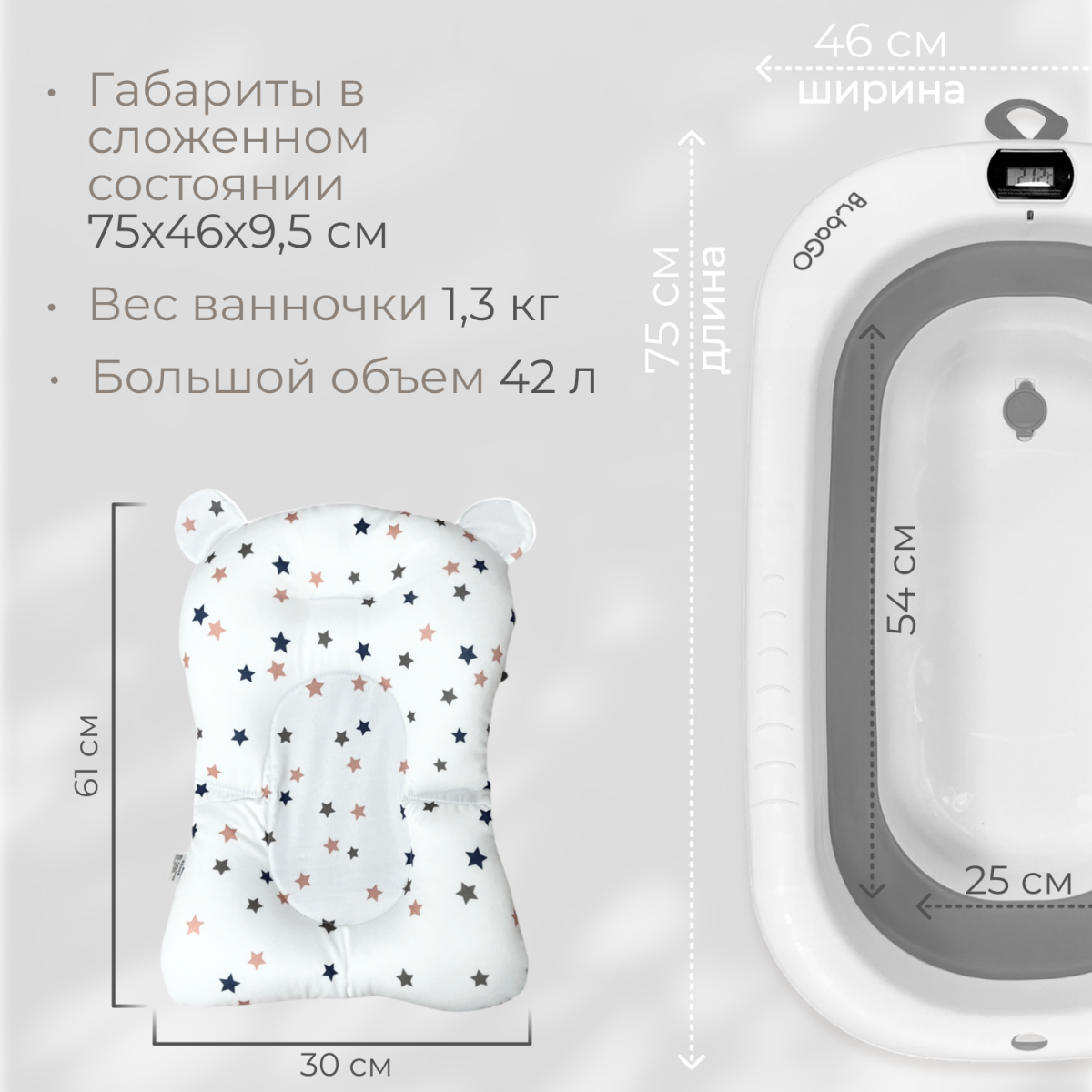 ✔ Подходит для купания с рождения✔ Встроенный сенсорный термометр✔ Плавающий гамак-матрасик с регулировкой✔ Нескользящие прорезиненные ножки✔ Держатель для душа на бортике✔ Ультракомпактное складывание✔ Гипоаллергенные и безопасные материалы✔ Полный комплект для комфортного купания