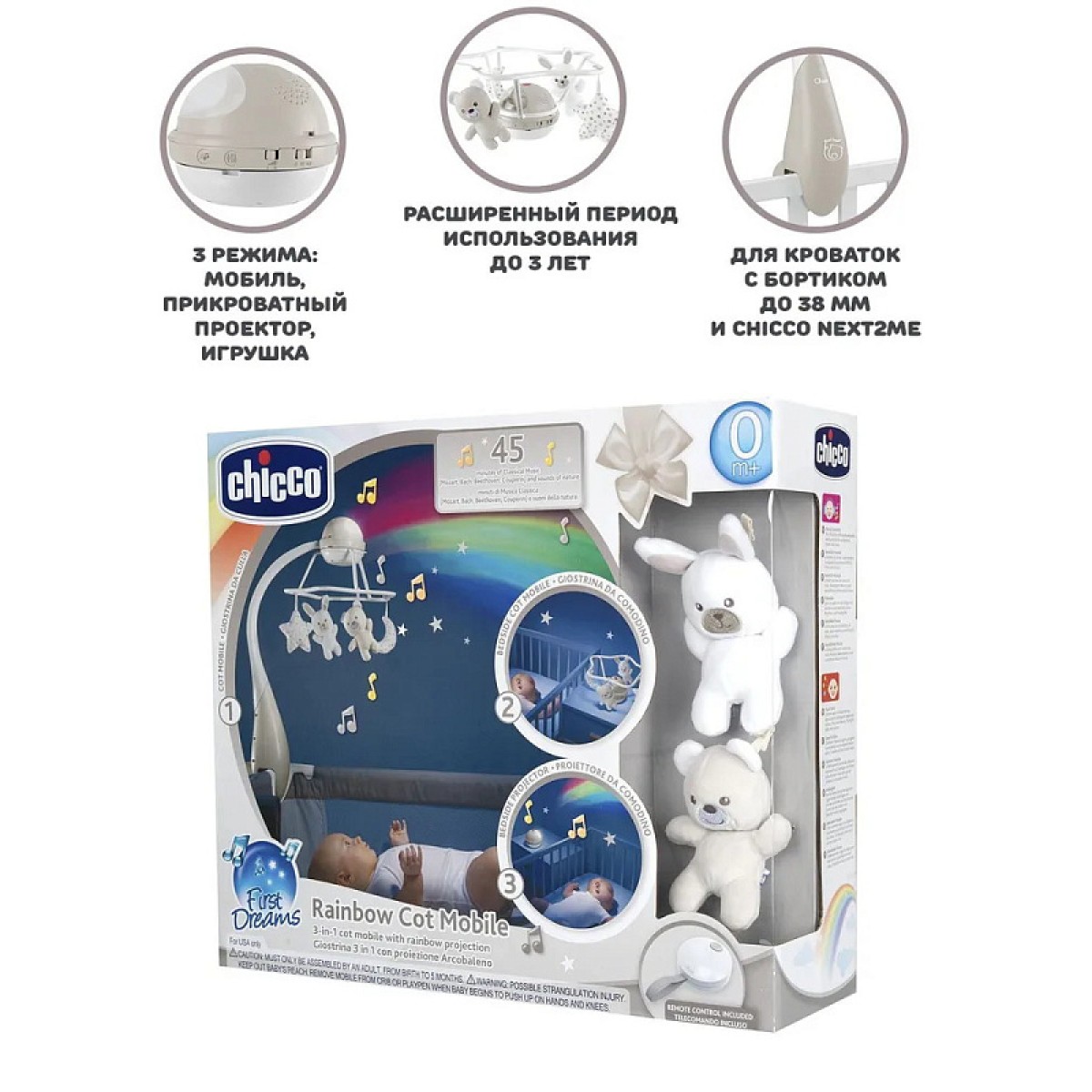 Игрушка-мобиль Chicco "Радуга" на кроватку Радуга 3-в-1 с дистанционным управлением 0+.