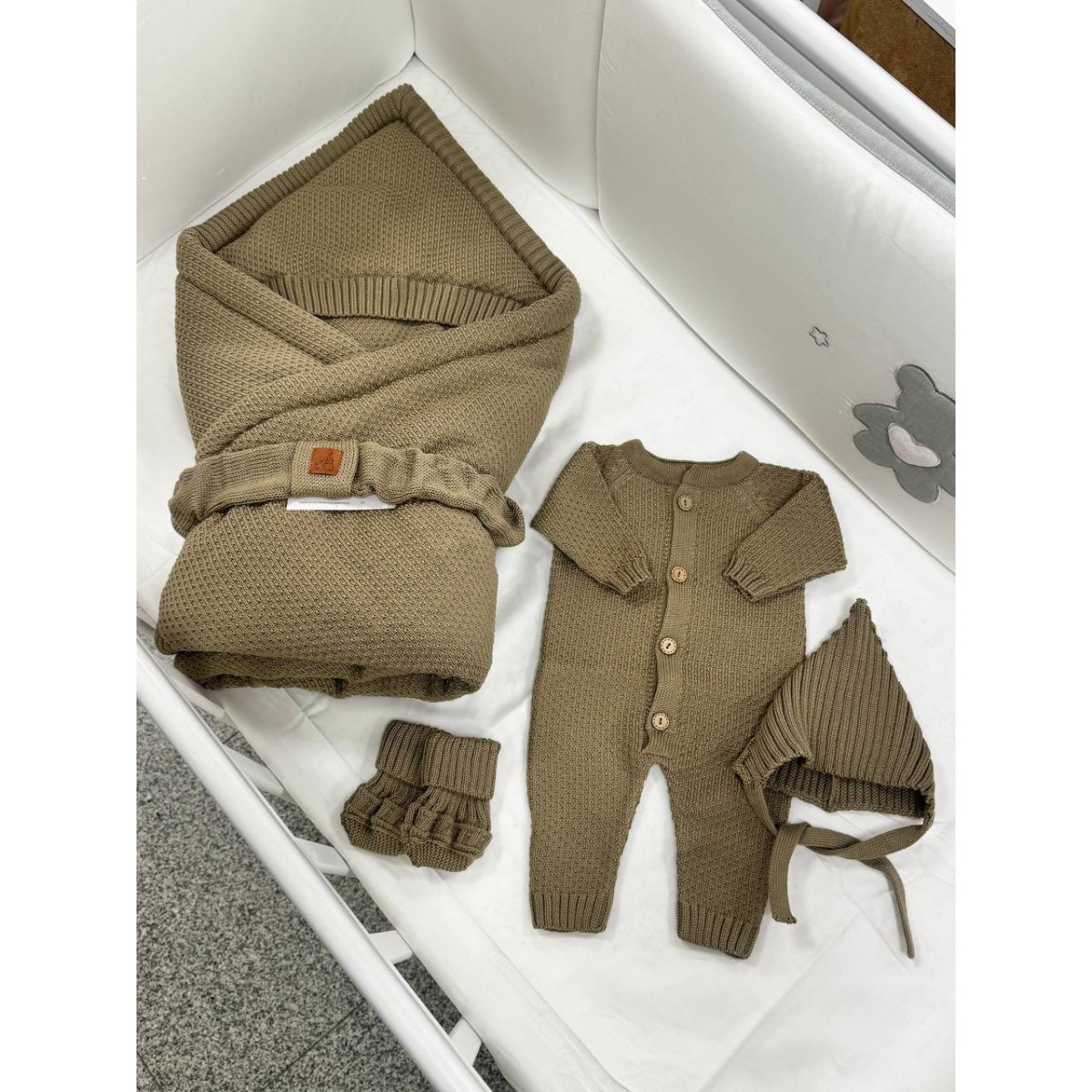 Комплект на выписку и прогулки 5 предметов Honey цвет: темно-оливковый 0369
