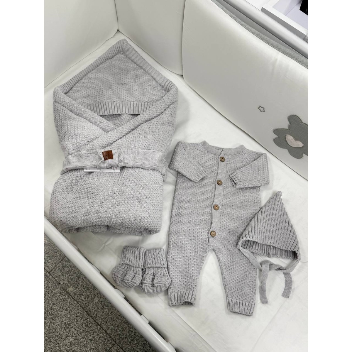 Комплект на выписку и прогулки 5 предметов Honey цвет: серый 0369