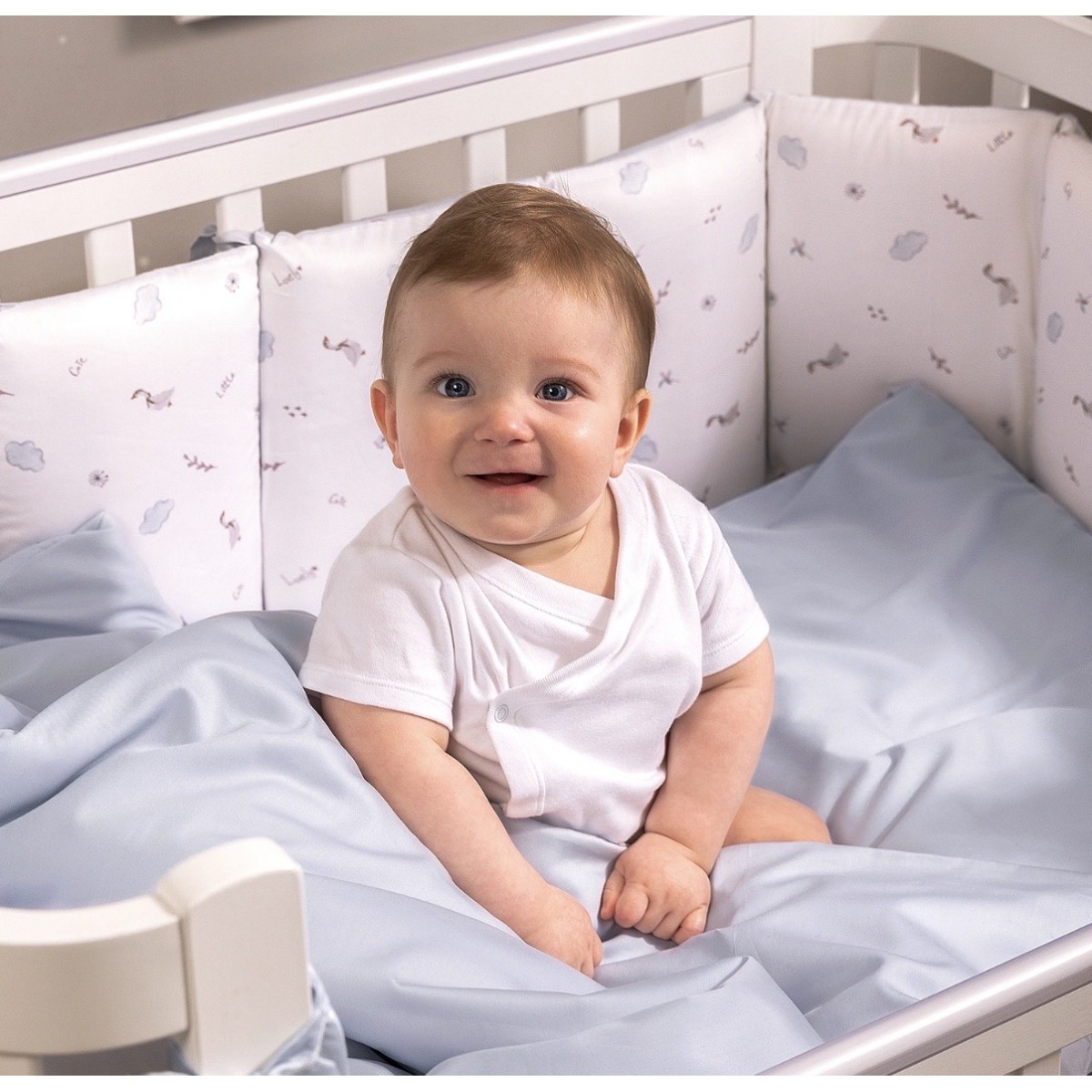 Лаконичный однотонный дизайн позволяет использовать комплект Una с любыми бортиками, а также делает его идеальным решением в качестве сменного комплекта для наборов Sleepy из 6 предметов.