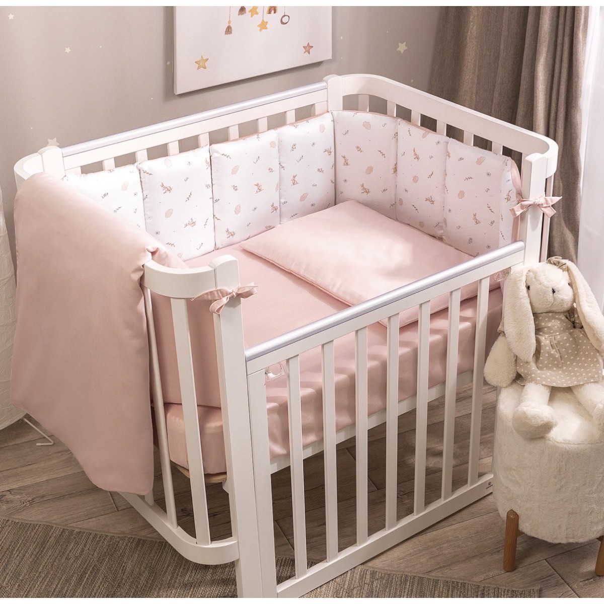 Лаконичный однотонный дизайн позволяет использовать комплект Una с любыми бортиками, а также делает его идеальным решением в качестве сменного комплекта для наборов Sleepy из 6 предметов.