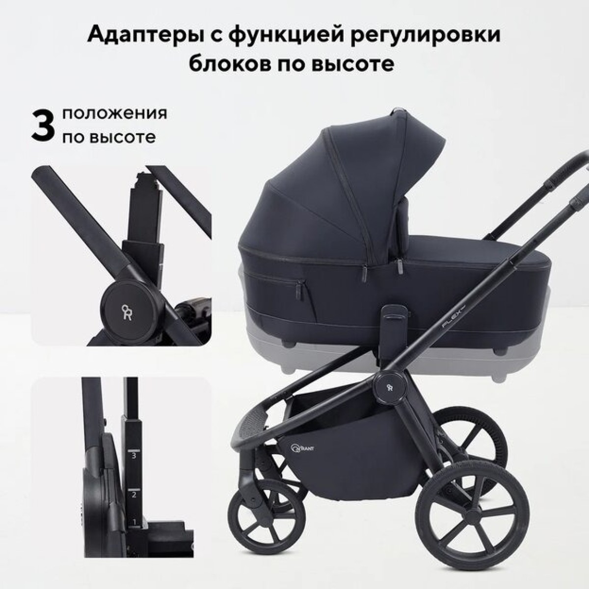 -быстросъемная люлька (система One Click Move) в этой модели дополнена кнопками памяти. Что позволяет непринужденно снимать спальный блок одной рукой.
