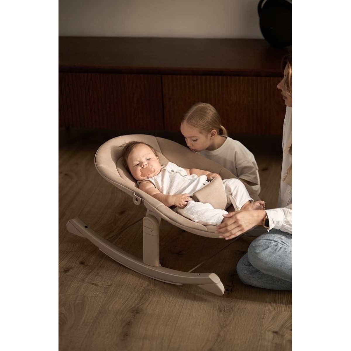 Благодаря естественному и плавному покачиванию малыш чувствует себя спокойно и в безопасности, а родители получают возможность на короткую передышку. Ребёнок остаётся рядом — в комфорте и под присмотром — пока вы восстанавливаете силы и продолжаете день с новой энергией.