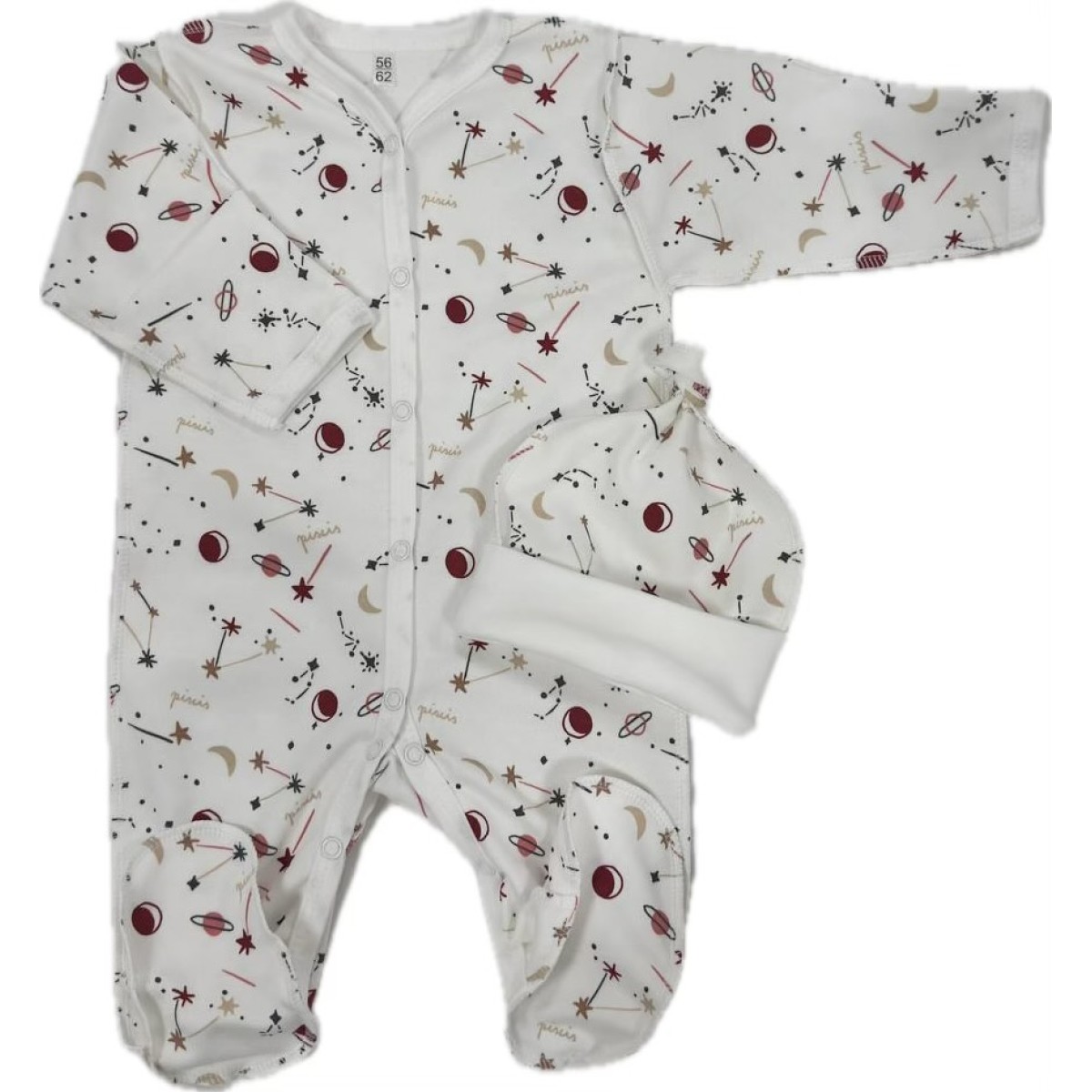 Комплект: Слип на кнопках + шапочка-узелок со швами наружу 50 см Newborn "Созвездия" Т-097