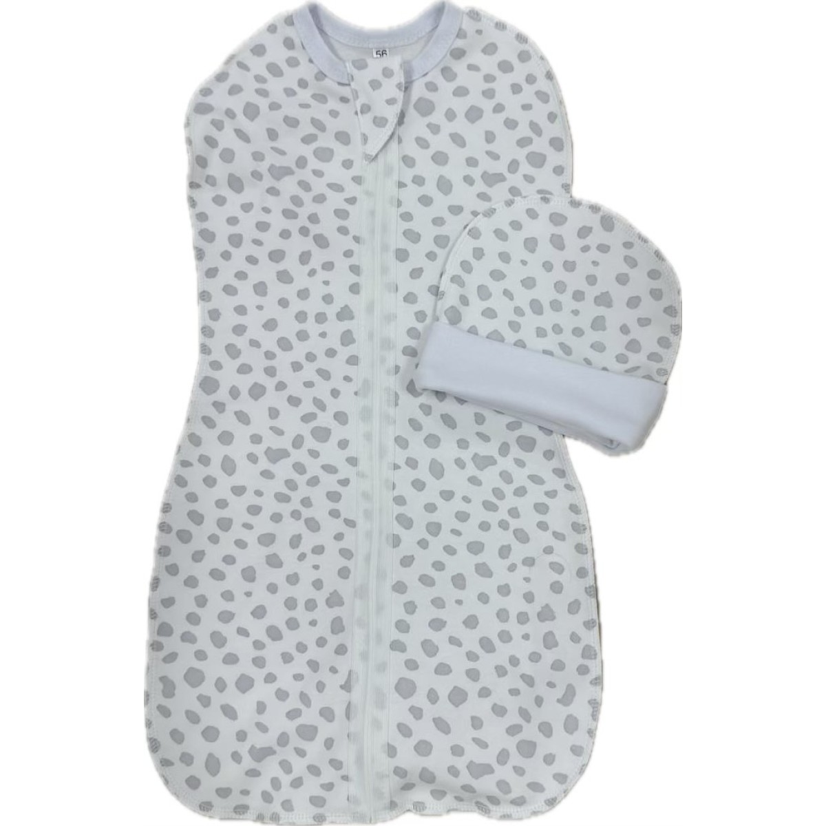 Пеленка-кокон на молнии с шапочкой 56-62 см принт: пятнышки серые маленькие Т-007