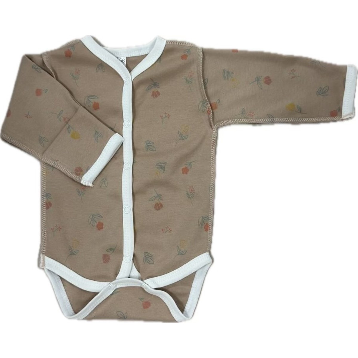 Боди с длинным рукавом на кнопках 56-62 см принт: цветы на капучино Т-131