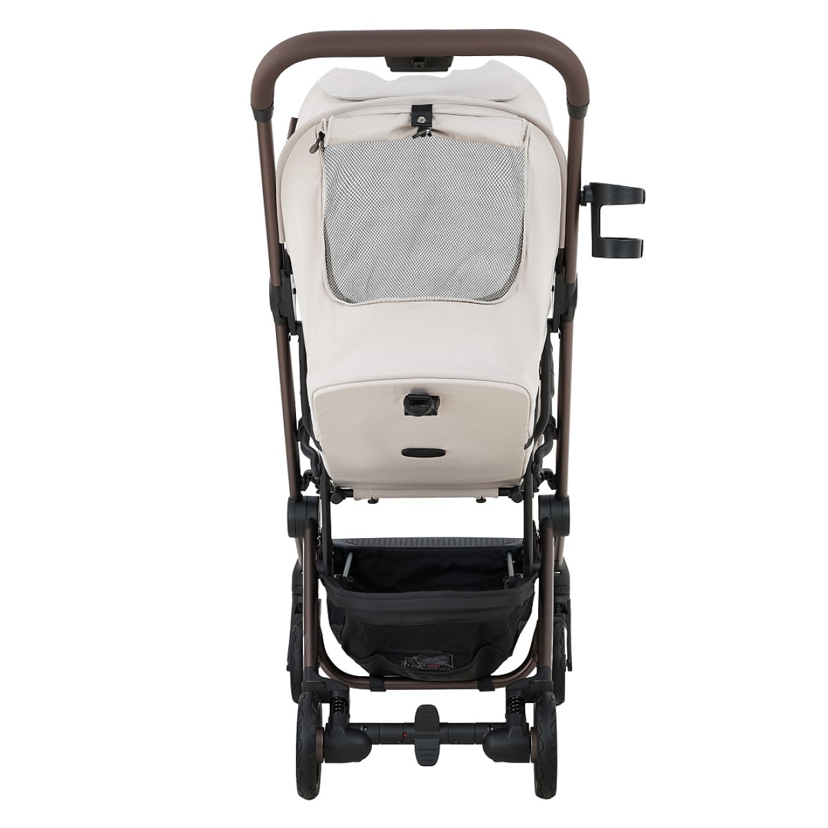 • Вентиляционная окошко в капюшоне. Вставка из дышащей сетки на задней стенке обеспечивает вентиляцию и комфортные прогулки в жаркие дни. Вентиляционное окошко легко открывается с помощью двух боковых молний и фиксируется с использованием специального крепления.