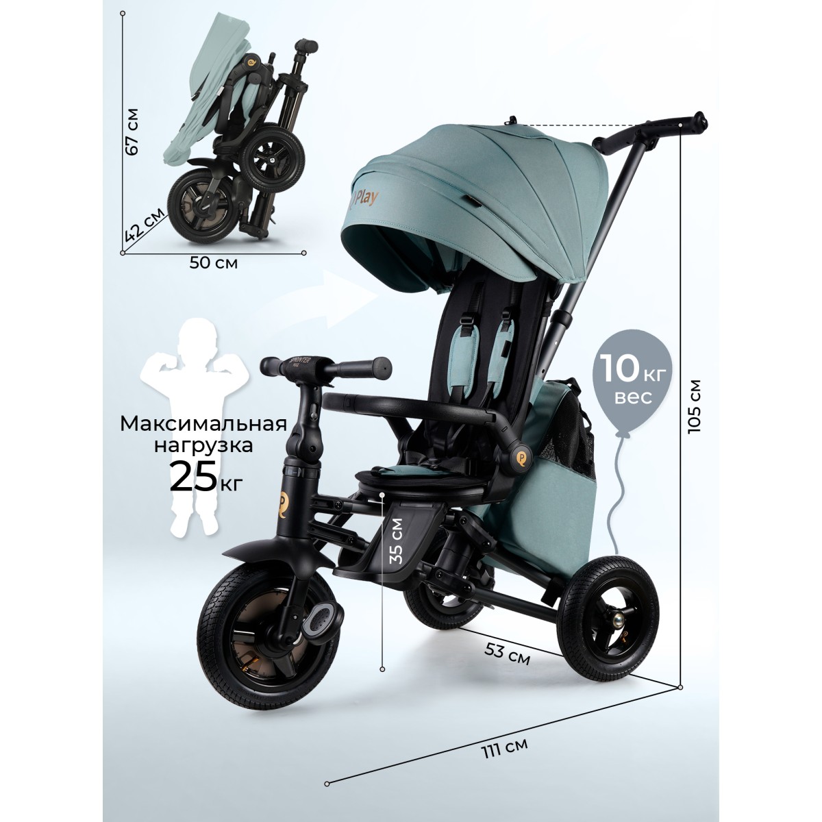 Трехколесный велосипед QPlay Sprinter Max – это продуманный до мелочей складной велосипед-коляска для детей от 10 месяцев до 5 лет, который легко заменит классическую коляску в теплое время года. Он позволяет сделать прогулки более активными, яркими и комфортными, как для ребёнка, так и для родителей.