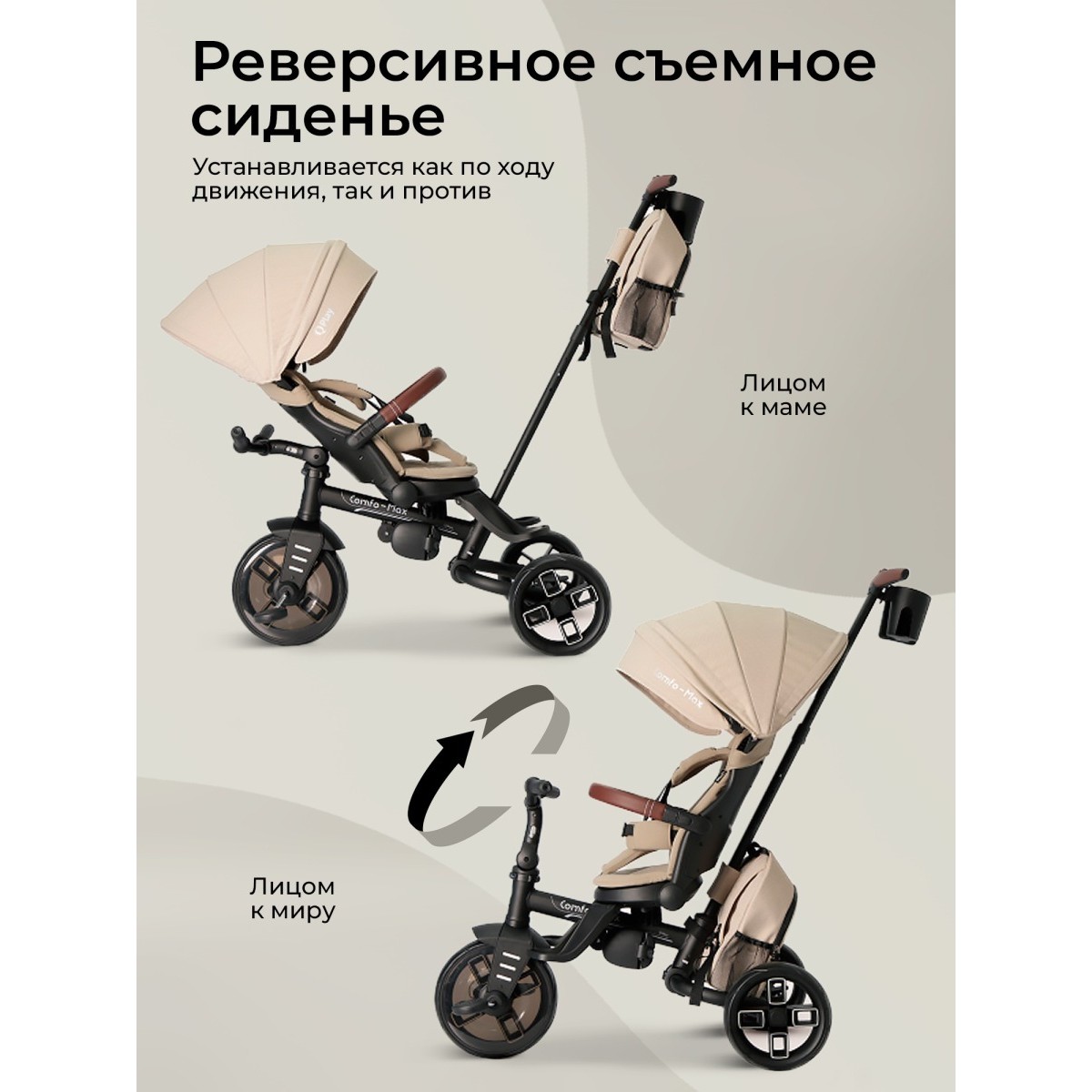 Велосипед трехколесный 8 в 1 Qplay Comfo Max цвет: beige T70