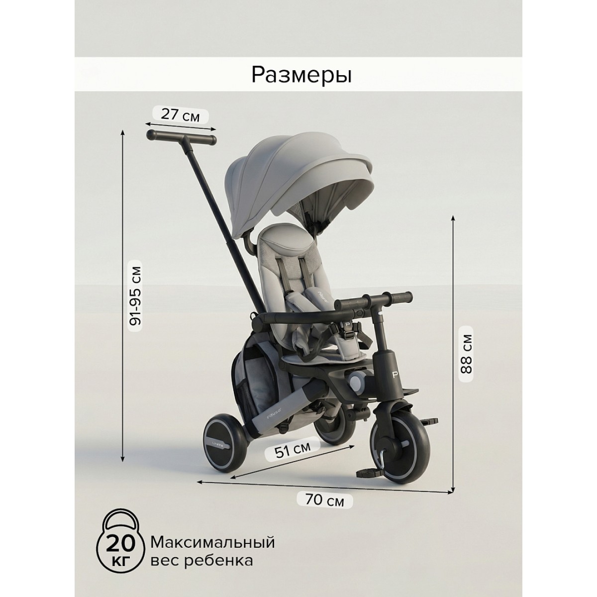 Складной трехколесный велосипед Pituso Leve Pro (2026) — Обновленная версия с переставными педалями и магнитным замком