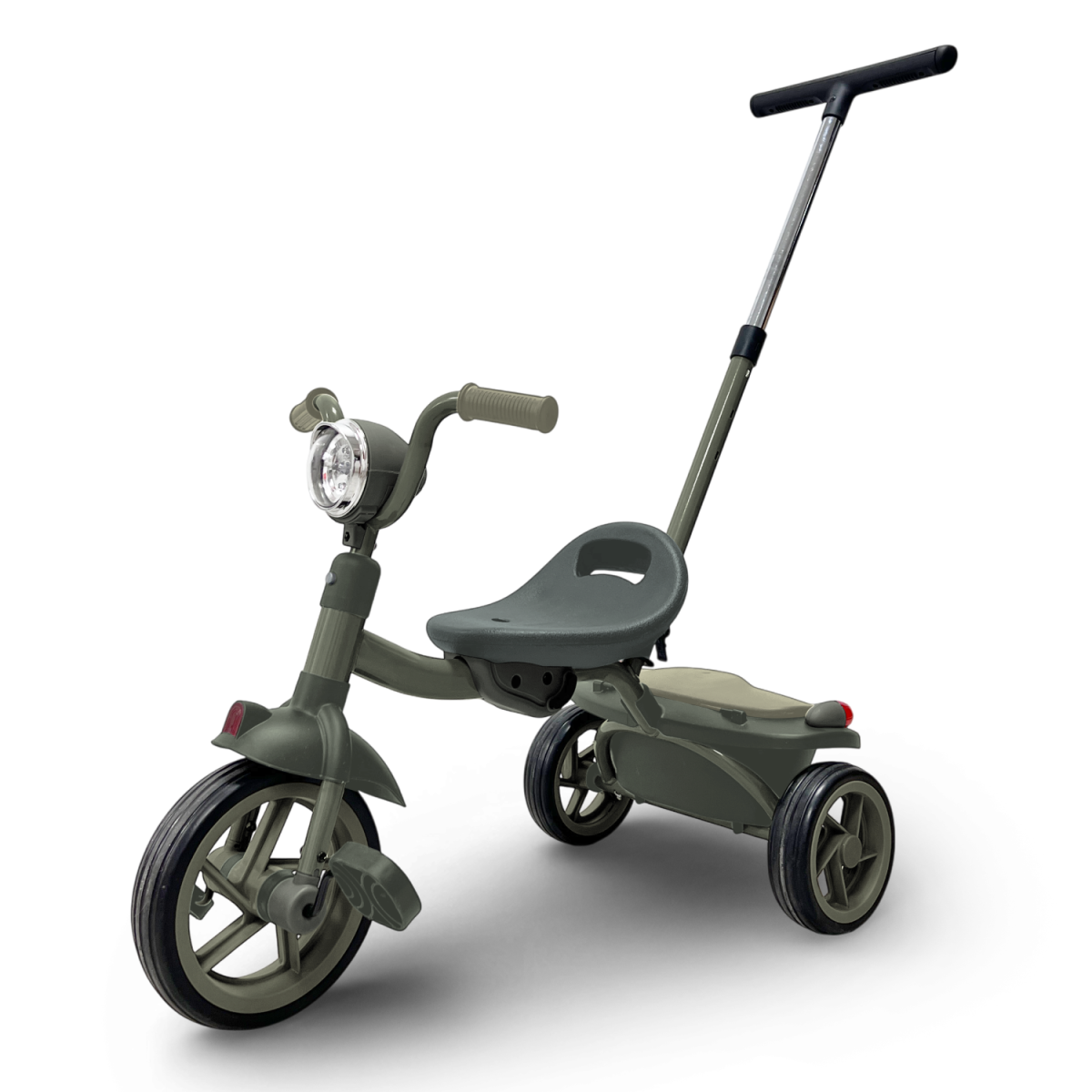 В комплект входит съёмная родительская ручка с регулировкой по высоте (66–87 см). Она помогает поддерживать ребёнка на первых этапах обучения, а когда малыш станет увереннее — ручку можно полностью снять.