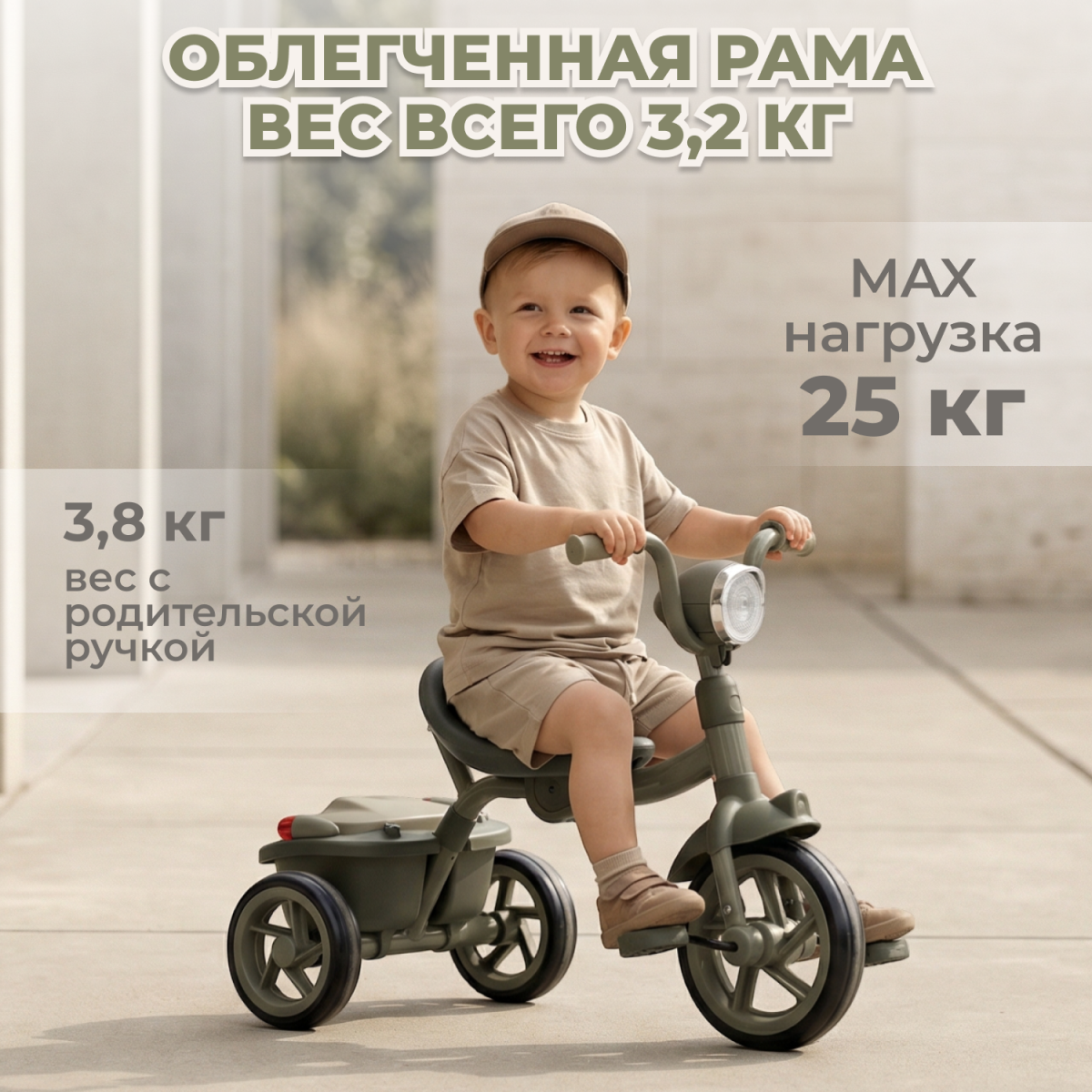 -Вес велосипеда: 3,2 кг (без ручки) / 3,8 кг (с ручкой)
