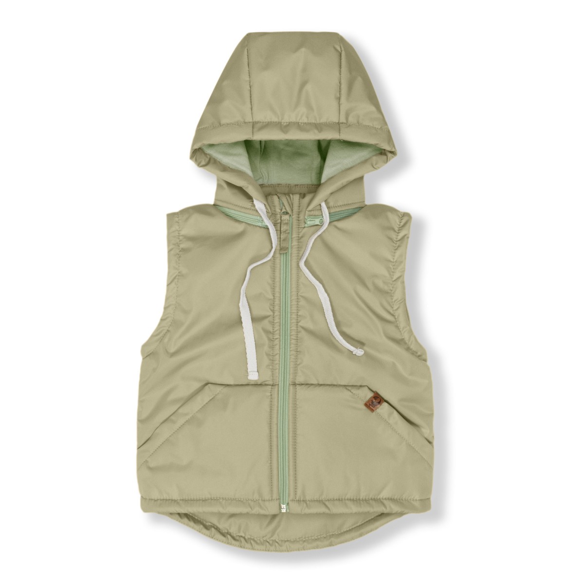 Удобная демисезонная жилеточка со съемным капюшоном. Спаренный размер позволяет носить такую жилетку не один сезон.